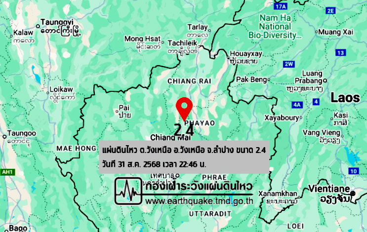 แผ่นดินไหว ขนาด 2.4 บริเวณพื้นที่ อ.วังเหนือ จ.ลำปาง