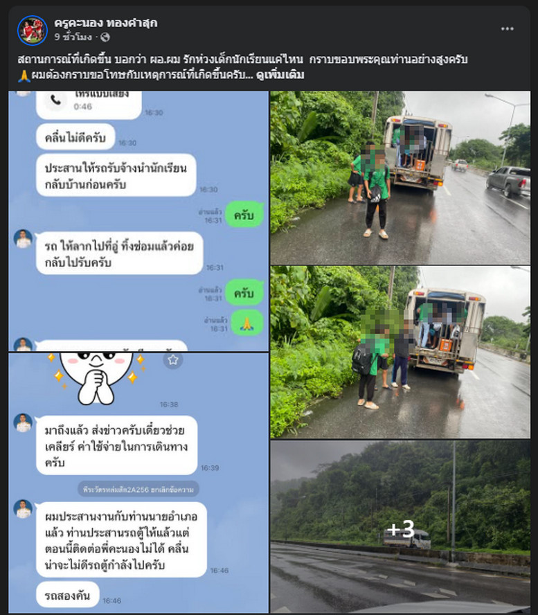 สอบถามผู้เห็นเหตุการณ์ ผู้เสียชีวิตมากับรถหกล้อโรงเรียนแห่งหนึ่ง จอดเสียตั้งแต่ช่วงบ่าย พร้อมนักเรียนที่คุณครูพาไปแข่งกีฬา จอดเสียอยู่ริมทาง ขาล่องจากเด่นชัยไปทางอุตรดิตถ์ เนื่องจากมาส่งนักเรียนแข่งกีฬา และเสร็จภารกิจกำลังจะกลับจังหวัดเพชรบูรณ์