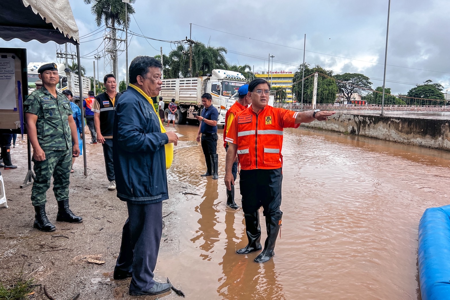 วันที่ 2 กันยายน 2568 เวลา 10.00 น. ที่ศูนย์อำนวยการป้องกันและบรรเทาสาธารณภัยเทศบาลเมืองเลย ตำบลกุดป่อง อำเภอเมืองเลย จังหวัดเลย (บริเวณประตูน้ำหลังไปรษณีย์เลย) นายชัยพจน์ จรูญพงศ์ ผู้ว่าราชการจังหวัดเลย ลงพื้นที่ติดตามสถานการณ์น้ำแม่น้ำเลยอย่างต่อเนื่อง โดยมี นายไพรินทร์ ลิ่มเจริญ รองผู้ว่าราชการจังหวัดเลย นางสาวภูมรินทร์ คงเพียรธรรม ปลัดจังหวัดเลย นายธีรภัทร สามไพบูลย์ ผู้อำนวยการโครงการชลประทานเลย พ.ต.ท.คูณทัต วีระศักดิกุล รักษาราชการแทนหัวหน้าสำนักงานป้องกันและบรรเทาสาธารณภัยจังหวัดเลย นายวรพจน์ โสระสิงห์ นายกเทศมนตรีเมืองเลย พร้อมบูรณาการร่วมกับหน่วยงานที่เกี่ยวข้อง เร่งบรรจุกระสอบทรายและนำกระสอบทราย เพื่อใช้ก่อพนังกั้นน้ำแม่น้ำเลยไม่ให้ล้นทะลักเข้าสู่บ้านเรือนประชาชน พร้อมแจกจ่ายให้ประชาชนนำไปเสริมแนวป้องกันน้ำทะลักเข้าสู่บ้านเรือนของตนเอง ตลอดจนเพื่อป้องกันน้ำทะลักเข้าสู่บ้านเรือนประชาชนและพื้นที่เศรษฐกิจ ซึ่งเป็นมาตรการเร่งด่วนในการป้องกันผลกระทบและลดความเสียหายเพิ่มเติมจากระดับน้ำของแม่น้ำเลยที่สูงขึ้น เพื่อสร้างความอุ่นใจและคลายความกังวลให้แก่พี่น้องประชาชนในพื้นที่ประสบเหตุอุทกภัย จากนั้นผู้ว่าราชการจังหวัดเลย พร้อมคณะ ได้ลงพื้นที่ชุมชนบ้านเลิงใหญ่หมู่บ้านมั่นคง ตำบลกุดป่อง เพื่อนำข้าวกล่องและน้ำดื่มไปแจกจ่ายให้กับประชาชนที่ได้รับความเดือดร้อน