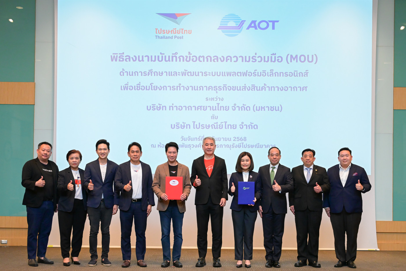“คณะกรรมการไปรษณีย์ไทยมุ่งกำหนดทิศทางและสนับสนุนนโยบายเชิงกลยุทธ์ ที่เน้นการบูรณาการเทคโนโลยีสมัยใหม่ควบคู่กับการสร้างความร่วมมือกับพันธมิตรสำคัญอย่าง AOT เพื่อเสริมสร้างความแข็งแกร่งให้กับระบบการขนส่งสินค้าทางอากาศของประเทศไทยก้าวสู่มาตรฐานสากล และสนับสนุนการพัฒนาเศรษฐกิจดิจิทัลในทุกมิติ ความร่วมมือครั้งนี้ยังเป็นส่วนสำคัญที่จะผลักดันให้ประเทศไทยก้าวขึ้นเป็นศูนย์กลางการขนส่งสินค้าทางอากาศในภูมิภาคอาเซียน เชื่อมโยงห่วงโซ่อุปทานโลก สร้างโอกาสทางการค้าและการลงทุนใหม่ ๆ และขับเคลื่อนเศรษฐกิจไทยให้เติบโตอย่างมั่นคงและยั่งยืนในระยะยาว”