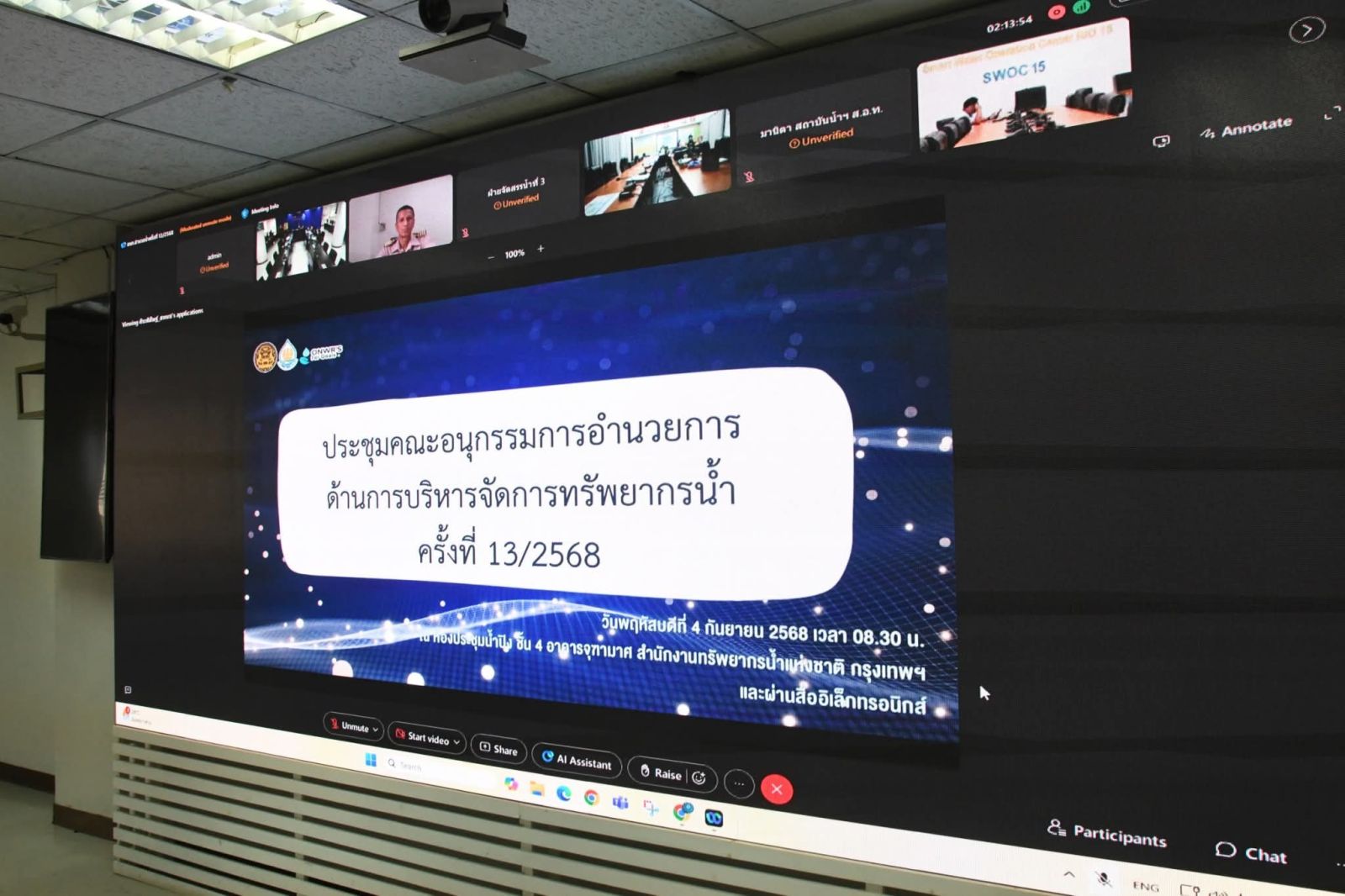 วันนี้ (4 กันยายน 2568) ดร.สุรสีห์ กิตติมณฑล เลขาธิการสำนักงานทรัพยากรน้ำแห่งชาติ (สทนช.) เป็นประธานการประชุมคณะอนุกรรมการอำนวยการด้านการบริหารจัดการทรัพยากรน้ำ ครั้งที่ 13/2568 โดยมีผู้ทรงคุณวุฒิและผู้แทนหน่วยงานที่เกี่ยวข้อง เข้าร่วมประชุม ณ อาคารจุฑามาศ สำนักงานทรัพยากรน้ำแห่งชาติ และผ่านสื่ออิเล็กทรอนิกส์