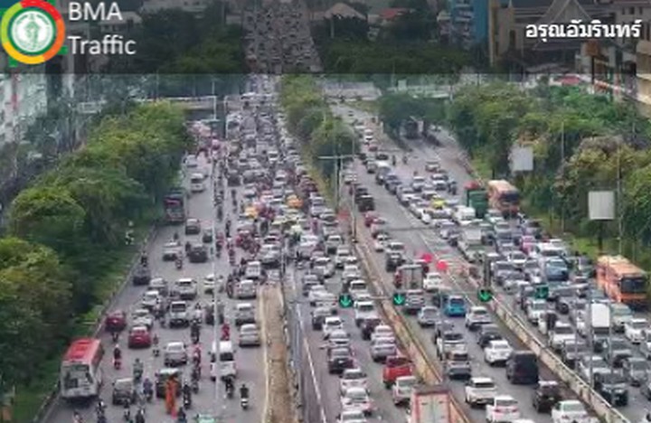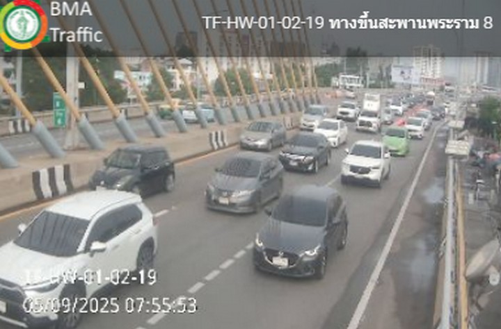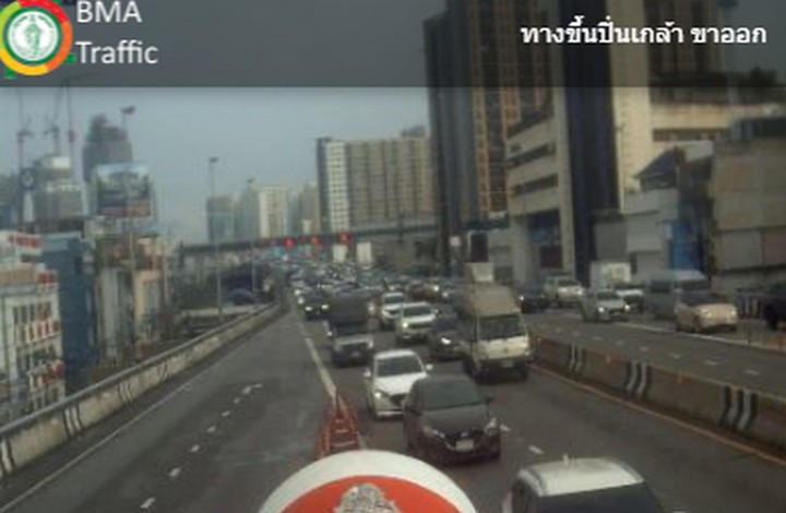 - คู่ขนานลอยฟ้าบรมราชชนนี ขาเข้า มุ่งหน้าสะพานพระราม 8 ท้ายแถวสะสมชะลอตัวเหนือพาต้าปิ่นเกล้า
