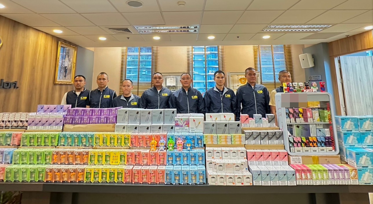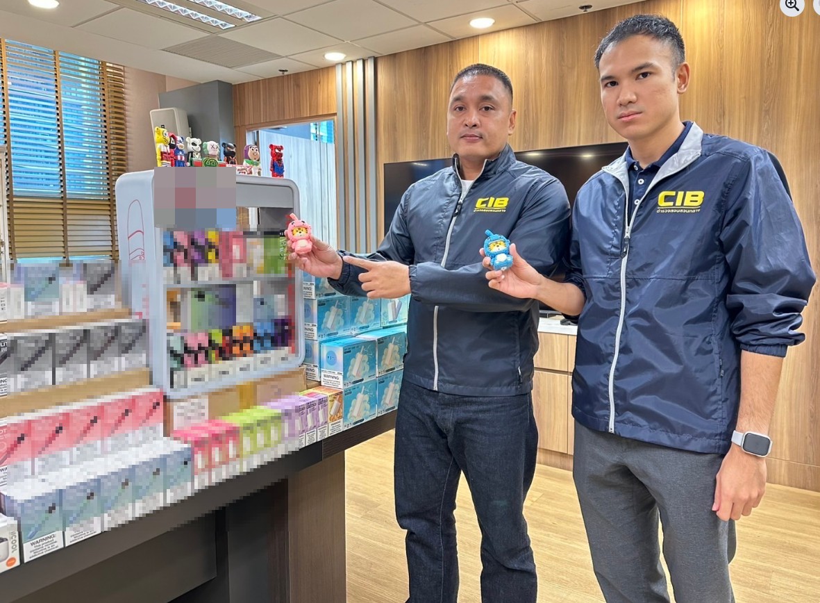 กองบัญชาการตำรวจสอบสวนกลาง (CIB) โดย กองบังคับการปราบปรามการกระทำความผิดเกี่ยวกับอาชญากรรมทางเศรษฐกิจ (บก.ปอศ.) ลงพื้นที่ตรวจค้น บ้านหลังหนึ่งในพื้นที่ อำเภอเมือง จังหวัดสมุทรสงคราม ตรวจยึดของกลาง ได้แก่ บุหรี่ไฟฟ้า น้ำยา และส่วนควบ จำนวนประมาณ 50,000 ชิ้น