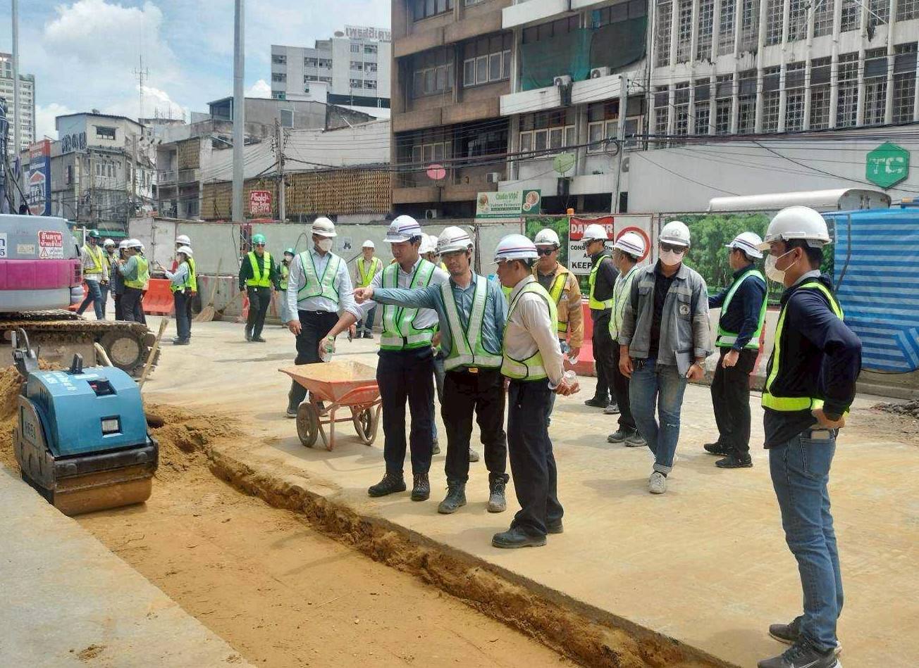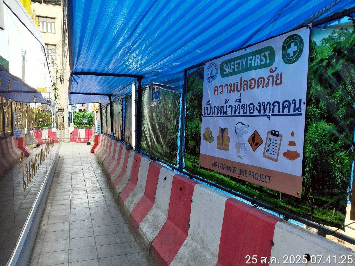 การรถไฟฟ้าขนส่งมวลชนแห่งประเทศไทย (รฟม.) โดยคณะกรรมการความปลอดภัย อาชีวอนามัยและสภาพแวดล้อมในการทำงาน (คปอ.) ลงพื้นที่ตรวจสอบการดำเนินงานด้านความปลอดภัยในการก่อสร้าง โครงการรถไฟฟ้าสายสีส้ม ช่วงบางขุนนนท์ - ศูนย์วัฒนธรรมแห่งประเทศไทย ช่วงเวลากลางวัน (Day Audit) โดยลงพื้นที่บริเวณสถานีราชเทวี สถานีประตูน้ำ และสถานีราชปรารภ โดยได้ตรวจสอบการปิดคลุมกองวัสดุ ตรวจสอบอุปกรณ์ต่างๆ ให้มีความสมบูรณ์และพร้อมใช้งาน รวมทั้งจัดเก็บวัสดุอุปกรณ์การก่อสร้างให้เรียบร้อย การวางแบริเออร์ตามแนวเขตก่อสร้างให้เป็นระเบียบ โดยแนวแบริเออร์จะต้องอยู่ภายในเขตพื้นที่ที่กำหนดเพื่อไม่ให้ล้ำเข้าพื้นผิวจราจร ซึ่งเป็นการป้องกันอุบัติเหตุที่อาจเกิดขึ้นจากการใช้ถนนในบริเวณดังกล่าว การติดตั้งแผงผ้าใบ ไฟส่องสว่าง ไฟสัญญาณเตือน และยึดติดป้ายเตือนให้มีความมั่นคงแข็งแรง อยู่ในตำแหน่งที่ปลอดภัย สามารถเห็นได้อย่างชัดเจน พร้อมกำชับให้เจ้าหน้าที่ทุกคนสวมใส่อุปกรณ์คุ้มครองความปลอดภัยส่วนบุคคลให้ครบถ้วนตลอดระยะเวลาที่ปฏิบัติงาน และปฏิบัติตามมาตรฐานความปลอดภัยที่กำหนดอย่างเคร่งครัด เพื่อป้องกันอุบัติเหตุที่ไม่พึงประสงค์