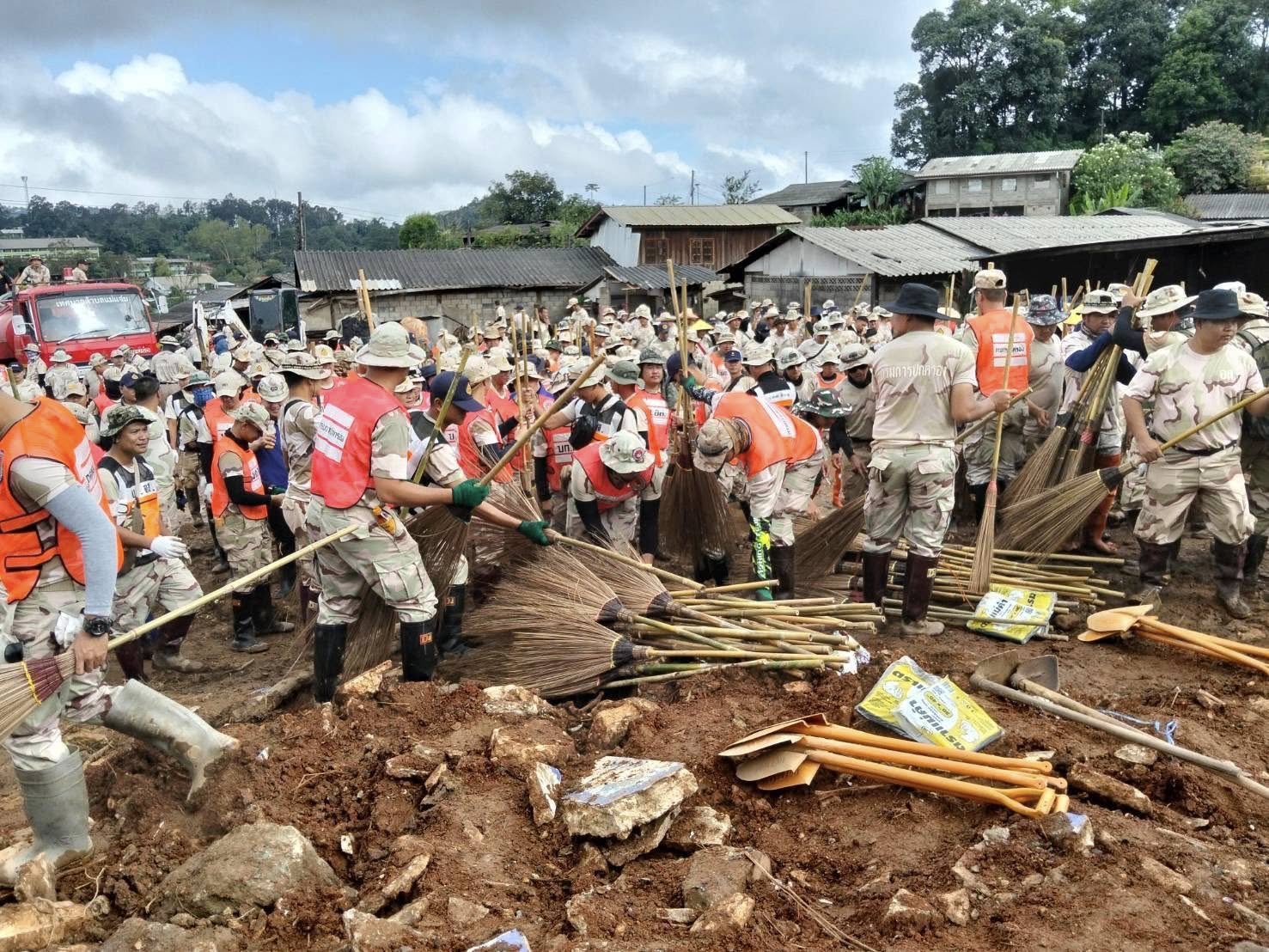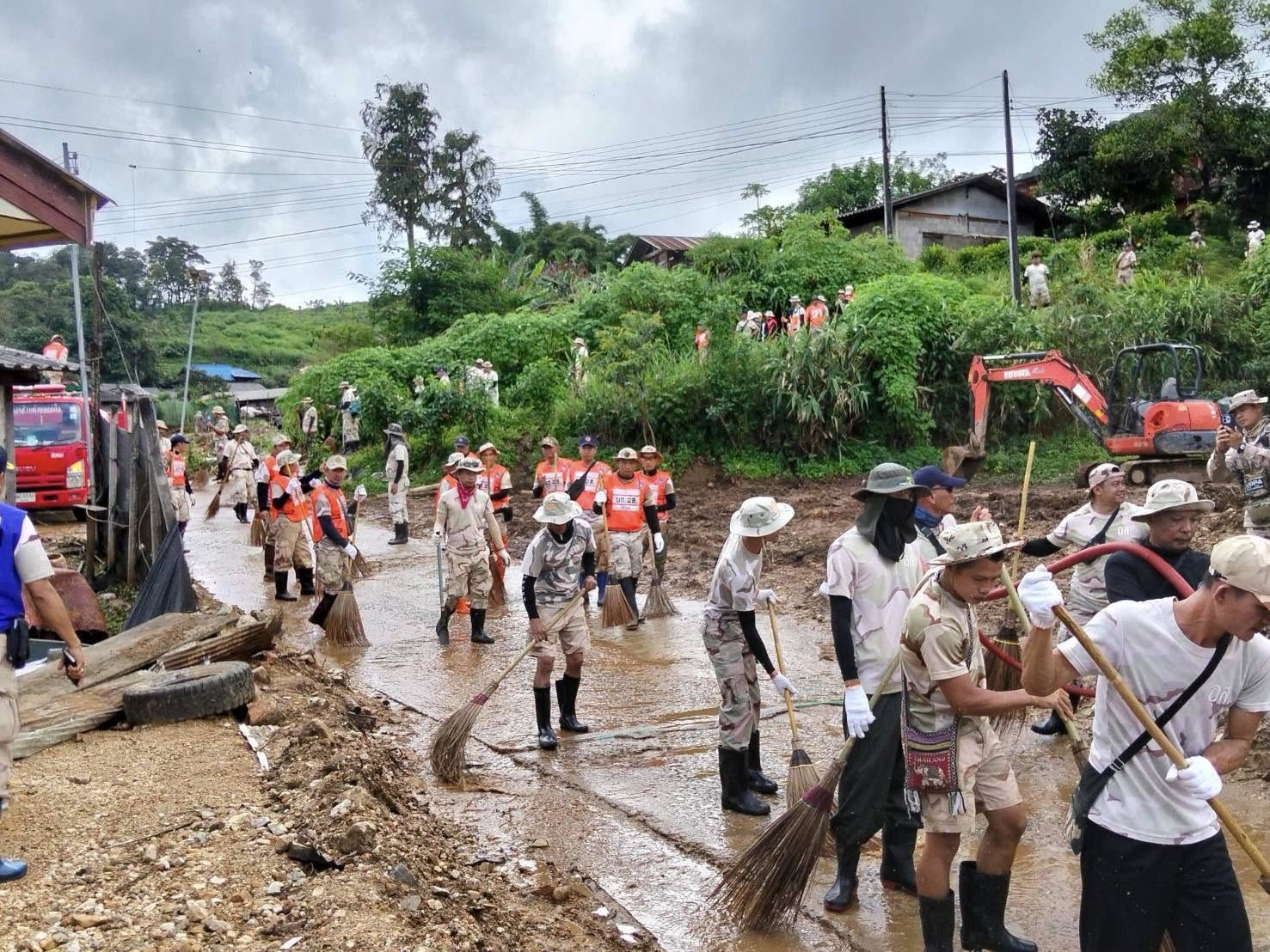 สำหรับกิจกรรมในวันนี้ เน้นการทำความสะอาดหมู่บ้านทั้งหมด 100% เพื่อเตรียมความพร้อมก่อนส่งมอบพื้นที่คืนให้แก่ชาวบ้านและหน่วยงานที่เกี่ยวข้องเพื่อเข้าสู่ขั้นตอนการฟื้นฟูต่อไป