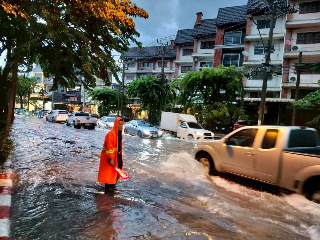 4. ถนนสุคนธสวัสดิ์ ช่วงหน้าโรงเรียนอนุบาลโชคชัย ระดับน้ำประมาณ 10-15 เซนติเมตร