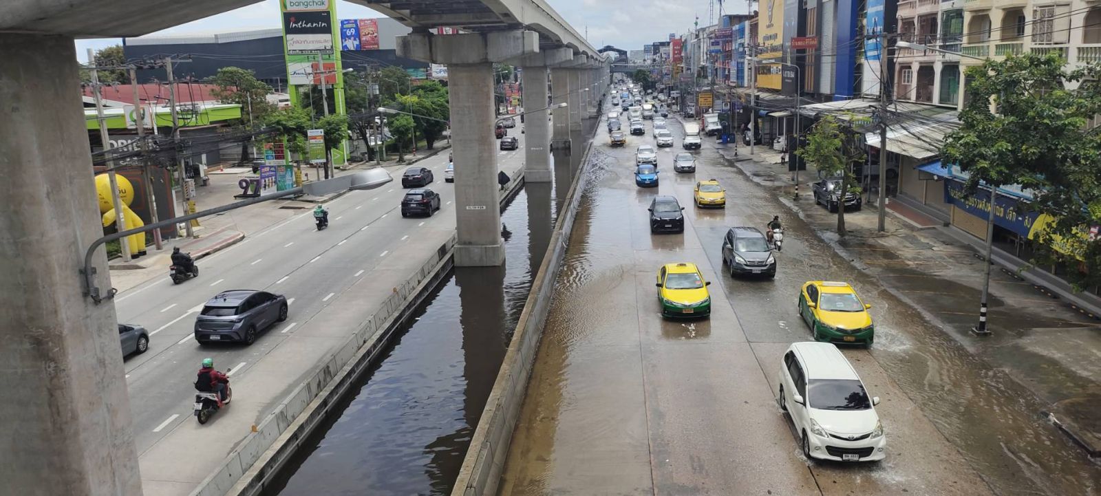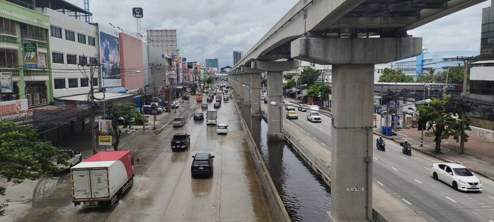 - ขาเข้ามีน้ำท่วมขังตั้งแต่ศรีด่าน 3 ถึงจุดกลับรถทรู 2 ช่องทาง ด้านขวากับด้านซ้าย 2 ช่องกลางไม่มีน้ำท่วมขังสภาพการจราจรยังเคลื่อนตัวตามกันได้ดี