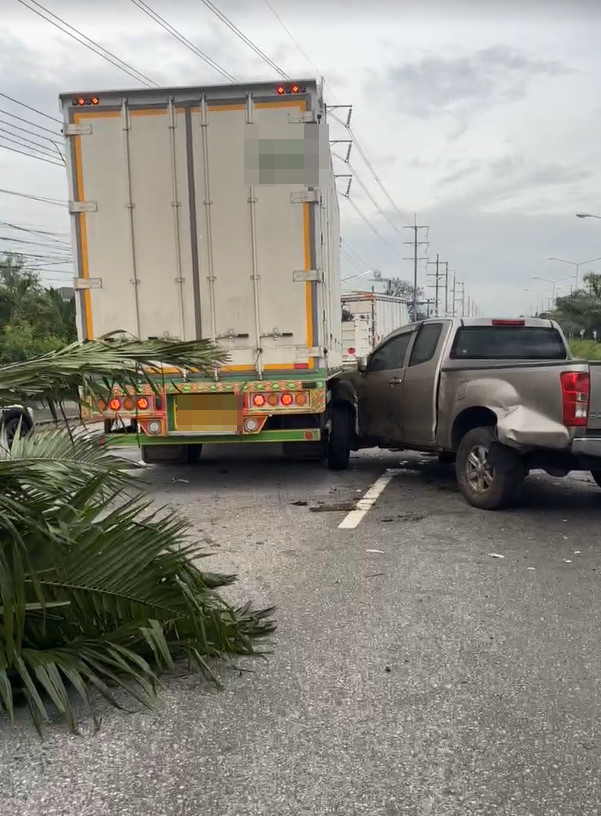 รถจักรยานยนต์ชนกับรถพ่วง หนุ่มวัย 26 ปี เสียชีวิตกลางถนนฉลองกรุง