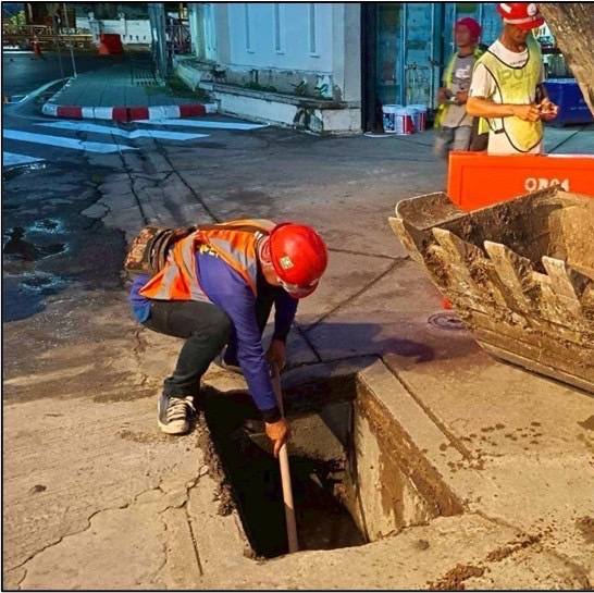 4. ดำเนินการล้างทำความสะอาดท่อระบายน้ำซอยข้างหอศิลป์ร่วมสมัยราชดำเนิน บริเวณสะพานผ่านฟ้าลีลาศ เพื่อเพิ่มความคล่องตัวในการระบายน้ำ