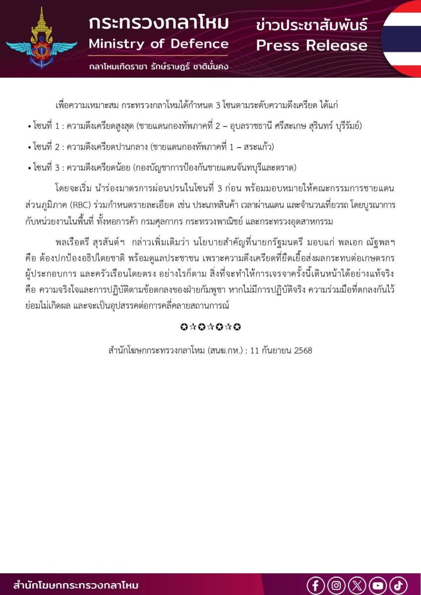 สำนักโฆษกกระทรวงกลาโหม (สนฆ.กห.) : 11 กันยายน 2568