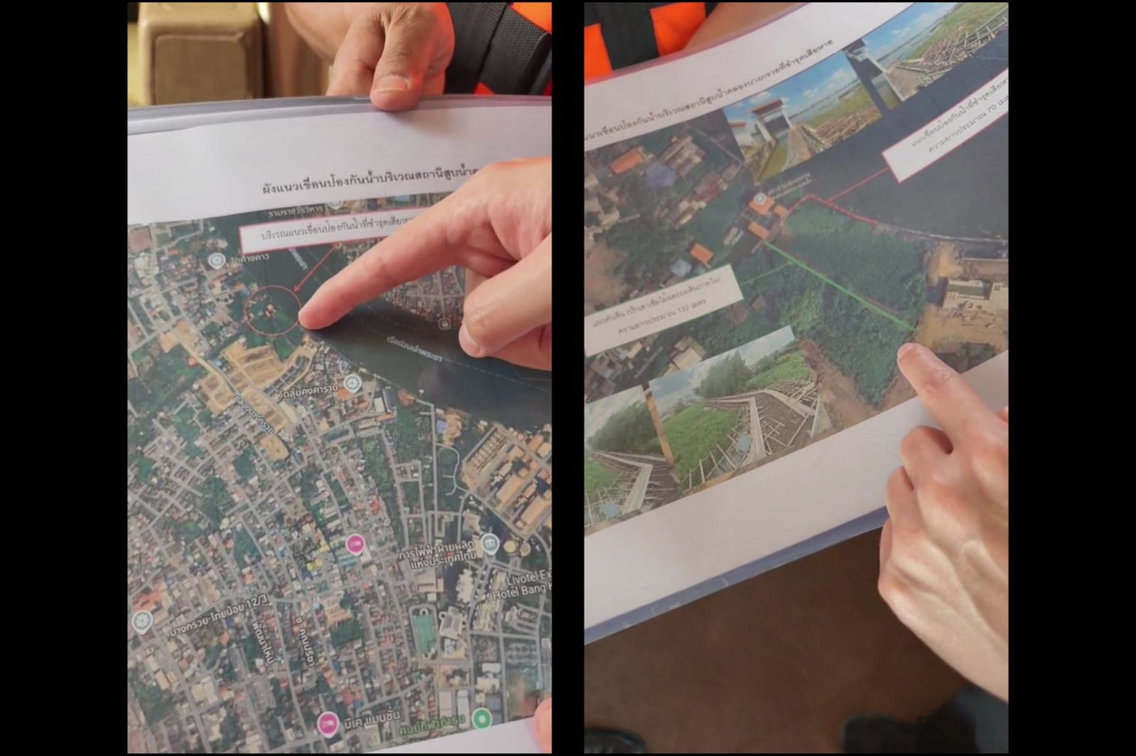 สำหรับจุดที่ติดตามข้อมูลอัปเดตในวันนี้ อาทิ บริเวณ ปตร.บางกรวย (จ.นนทบุรี) ซึ่งเป็นเขื่อนของกรมชลประทานที่มีความเสียหายด้านหน้าประตู ทำให้น้ำสามารถเข้ามาได้ ที่ผ่านมาเทศบาลเมืองบางกรวยได้ทำคันดินชั่วคราวสูง +2.5 ม.รทก. ซึ่งสามารถใช้การได้ น้ำไม่เข้า ส่วนการซ่อมถาวร กรมชลฯ อยู่ระหว่างของบประมาณ 2569, บริเวณวัดวิมุตยาราม ซึ่งเพิ่งสร้างเขื่อนเสร็จ ทำให้การป้องกันน้ำดีขึ้น, บริเวณวัดจันทร์สโมสร ซึ่งเป็นจุดฟันหลอ ได้มีการเตรียมกระสอบทรายไว้แล้ว, บริเวณวังหลัง ซึ่งเมื่อก่อนเป็นจุดฟันหลอ ปัจจุบันดำเนินการเรียบร้อย, บริเวณวัดระฆัง เป็นจุดอ่อนเนื่องจากเป็นท่าขึ้น-ลงเรือ ได้มีการจัดเรียงกระสอบทรายแล้ว
