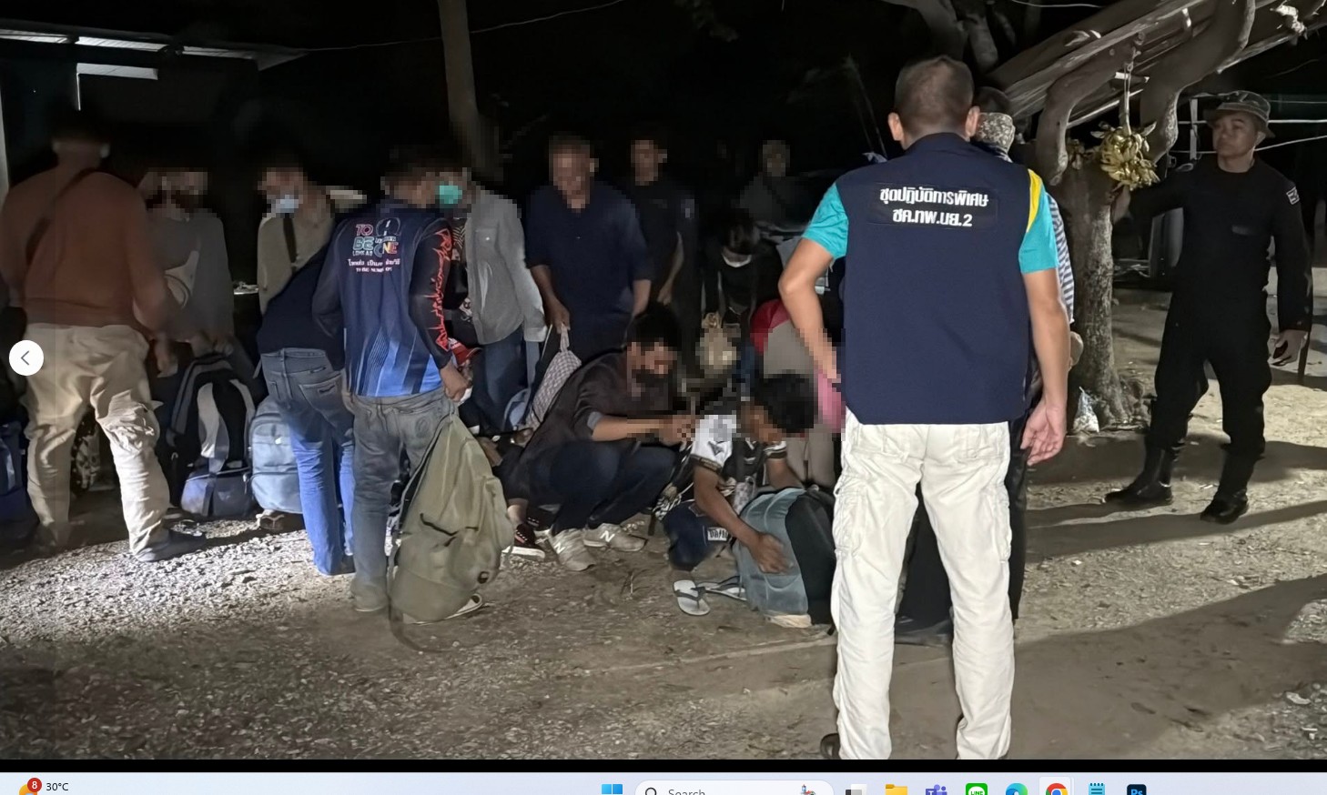 เมื่อเวลา 00.20 น.วันที่ 13 กันยายน 2568 กองทัพเรือ กองบัญชาการป้องกันชายแดนจันทบุรีและตราด โดยหน่วยเฉพาะกิจนาวิกโยธินจันทบุรี ชุดควบคุมทหารพรานนาวิกโยธินที่ 2 หมวดทหาร พรานนาวิกโยธิน คลองตาดำ (ฐานปฏิบัติการ05) ได้ทำการลาดตระเวนเฝ้าระวังบริเวณแนวชายแดน ช่วงบริเวณถนนลูกรัง ทางเข้าสวนลำไย หมู่ 8 ตำบลเทพนิมิต อำเภอโป่งน้ำร้อน จ.จันทบุรี พบชาวกัมพูชาจำนวนมาก กำลังเดินเท้าลักลอบเข้ามายังประเทศไทยโดยผิดกฎหมาย จึงแสดงตัวเพื่อเข้าจับกุมตรวจค้น ทำให้กลุ่มของชาวกัมพูชา พร้อมผู้นำนำพา แตกกระเจิงวิ่งหลบหนีไปได้หลายสิบคน