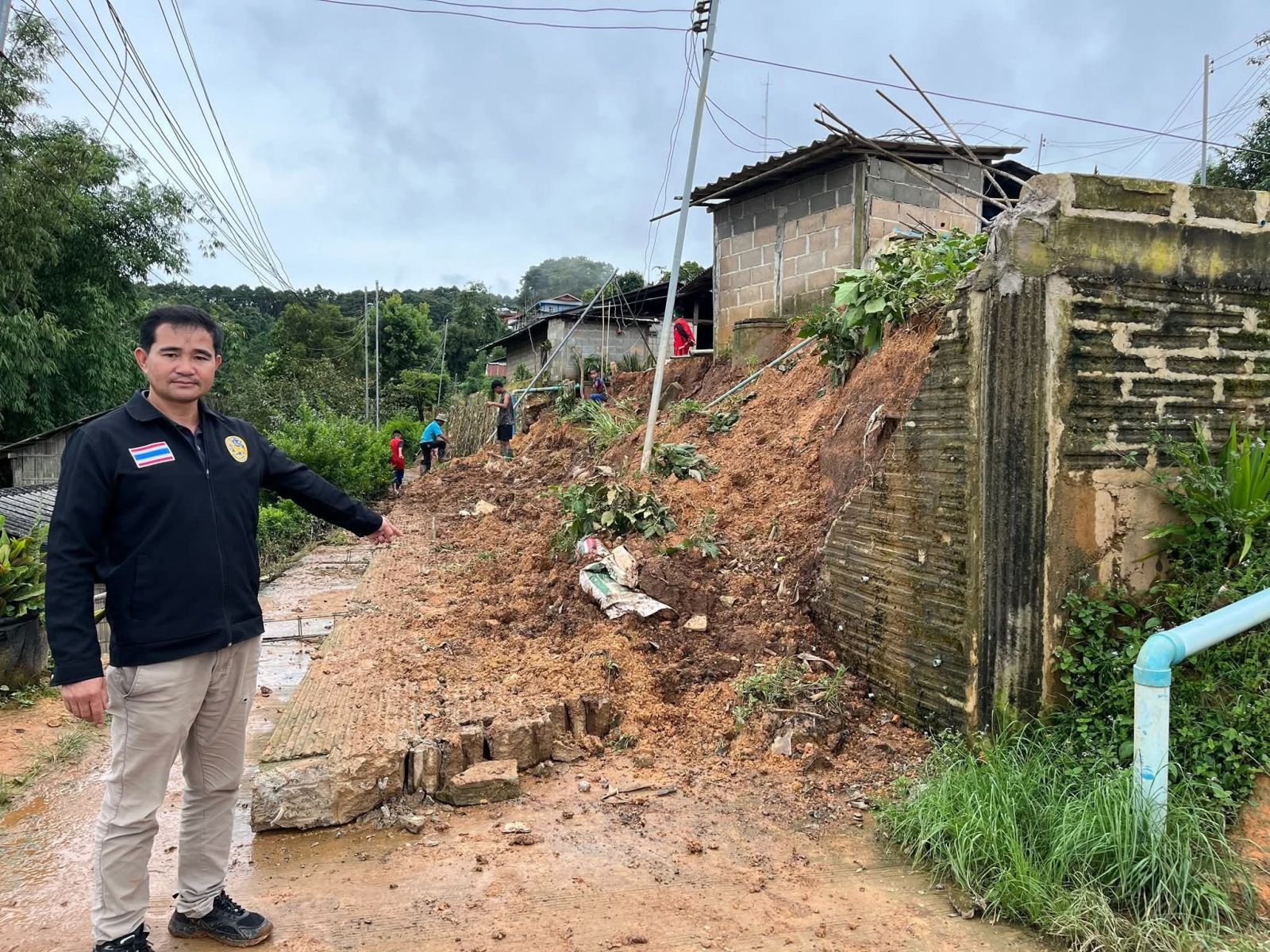 วันที่ 13 กันยายน 2568 ฝ่ายปกครองหมู่ที่ 14 ตำบลม่อนปิ่น อำเภอฝาง จังหวัดเชียงใหม่ ได้ลงพื้นที่สำรวจความเสียหายจากเหตุการณ์ฝนตกหนักที่ส่งผลให้เกิดดินสไลด์และดินทรุดตัวในหลายจุด จากการสำรวจพบความเสียหาย