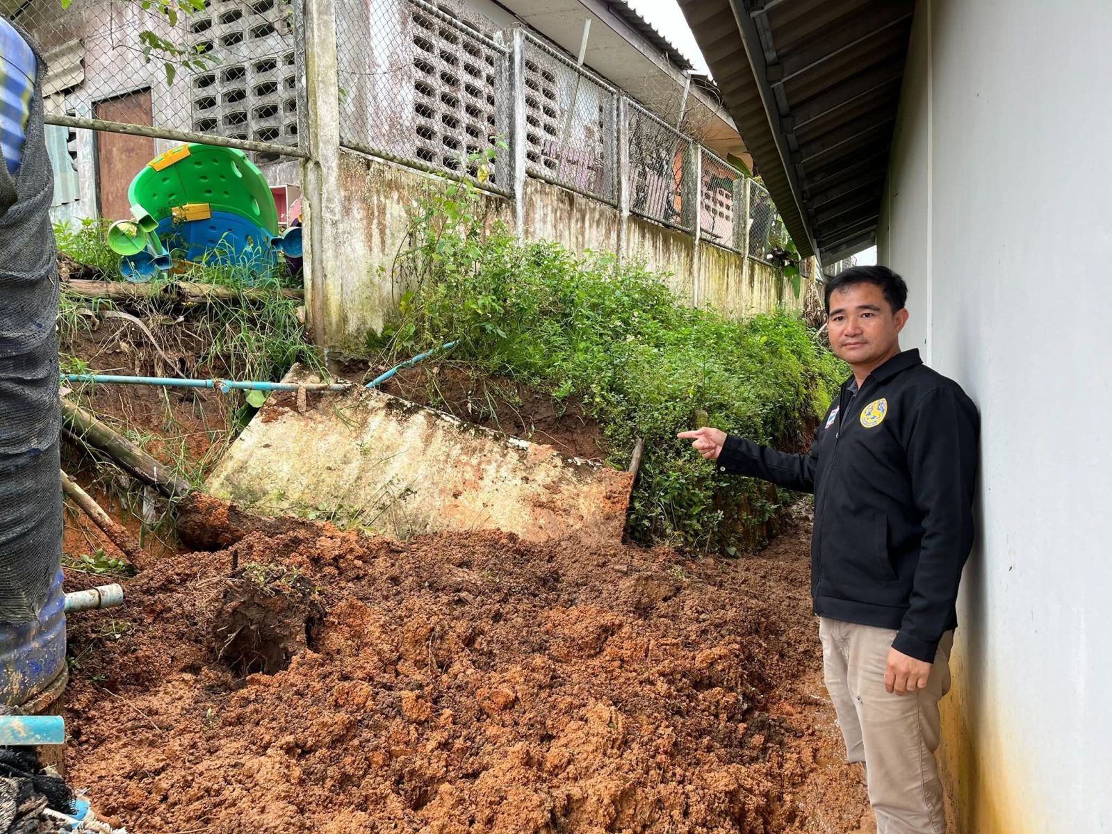 ทางสาธารณะคอนกรีตเสริมเหล็ก (คสล.) ในชุมชนจำนวน 2 จุด มีไหล่ทางทรุดตัว และมีกำแพงบ้านทรุดทับเส้นทางสัญจรของชาวบ้าน รั้วศูนย์พัฒนาเด็กเล็กพระราชทานบ้านนอแล ได้รับความเสียหายจากดินทรุดและดินสไลด์จำนวน 1 จุด ดินสไลด์ บริเวณทางสาธารณะและบ้านเรือนประชาชนอีกจำนวน 3 จุด