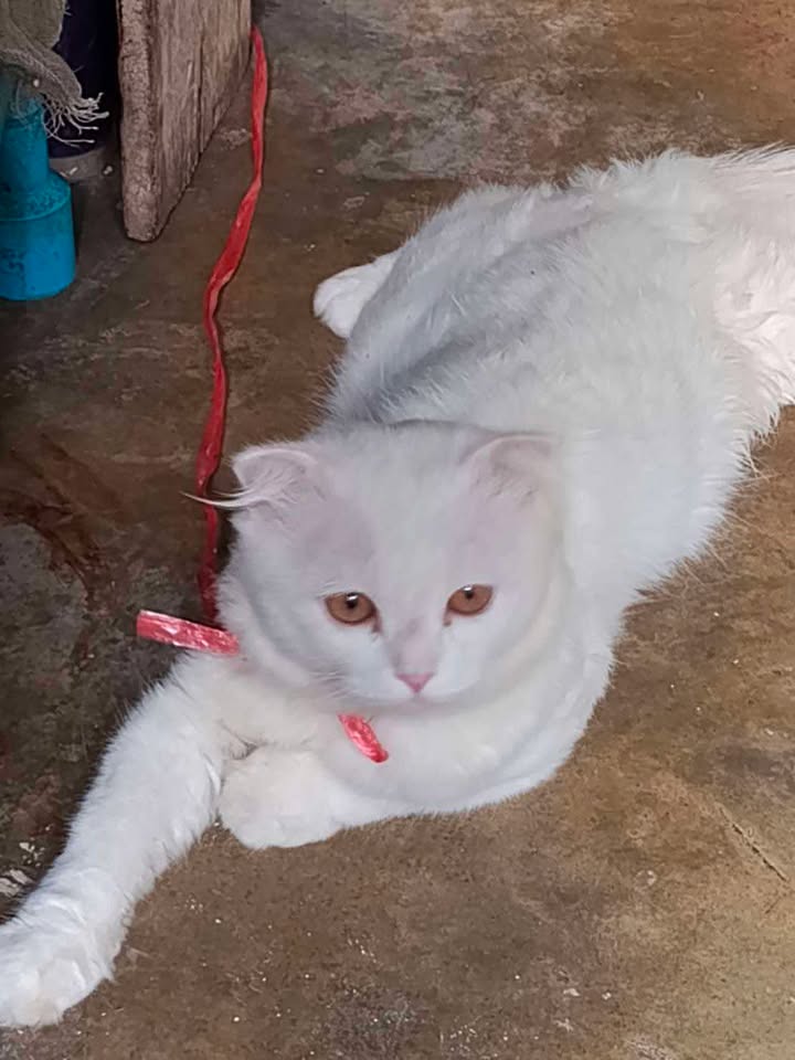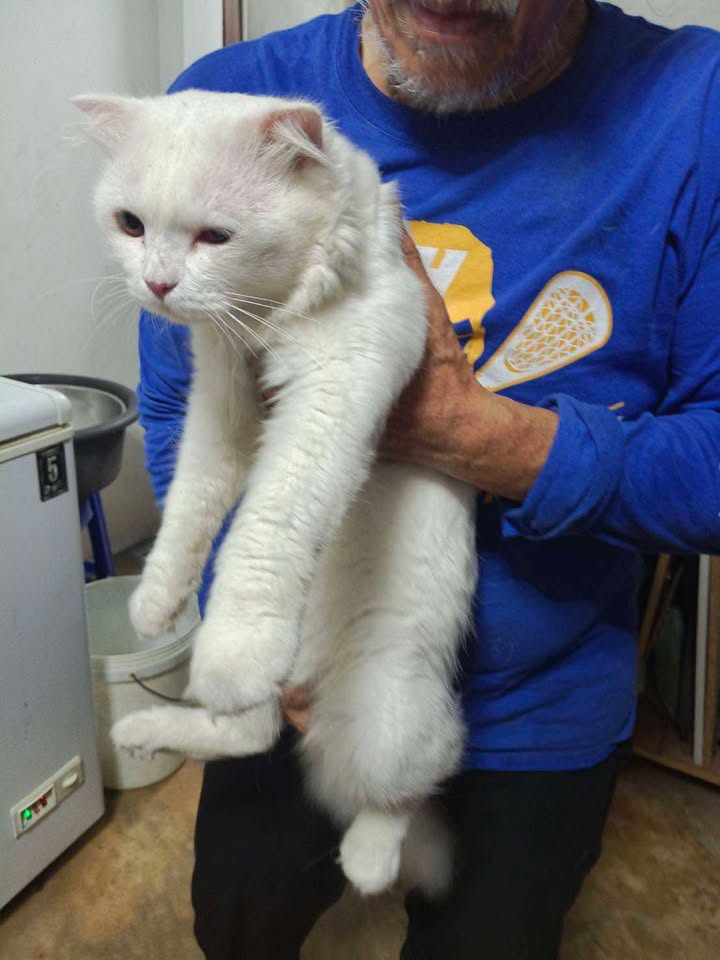 พบแมว สีขาว เพศผู้ พันธุ์ผสม ตัวใหญ่ เจออยู่ซอยลาดปลาเค้า 63 บริเวณ T.C. แมนชั่น และแฟลตทหาร ช่วงดึก วันที่ 12 กันยายน 2568