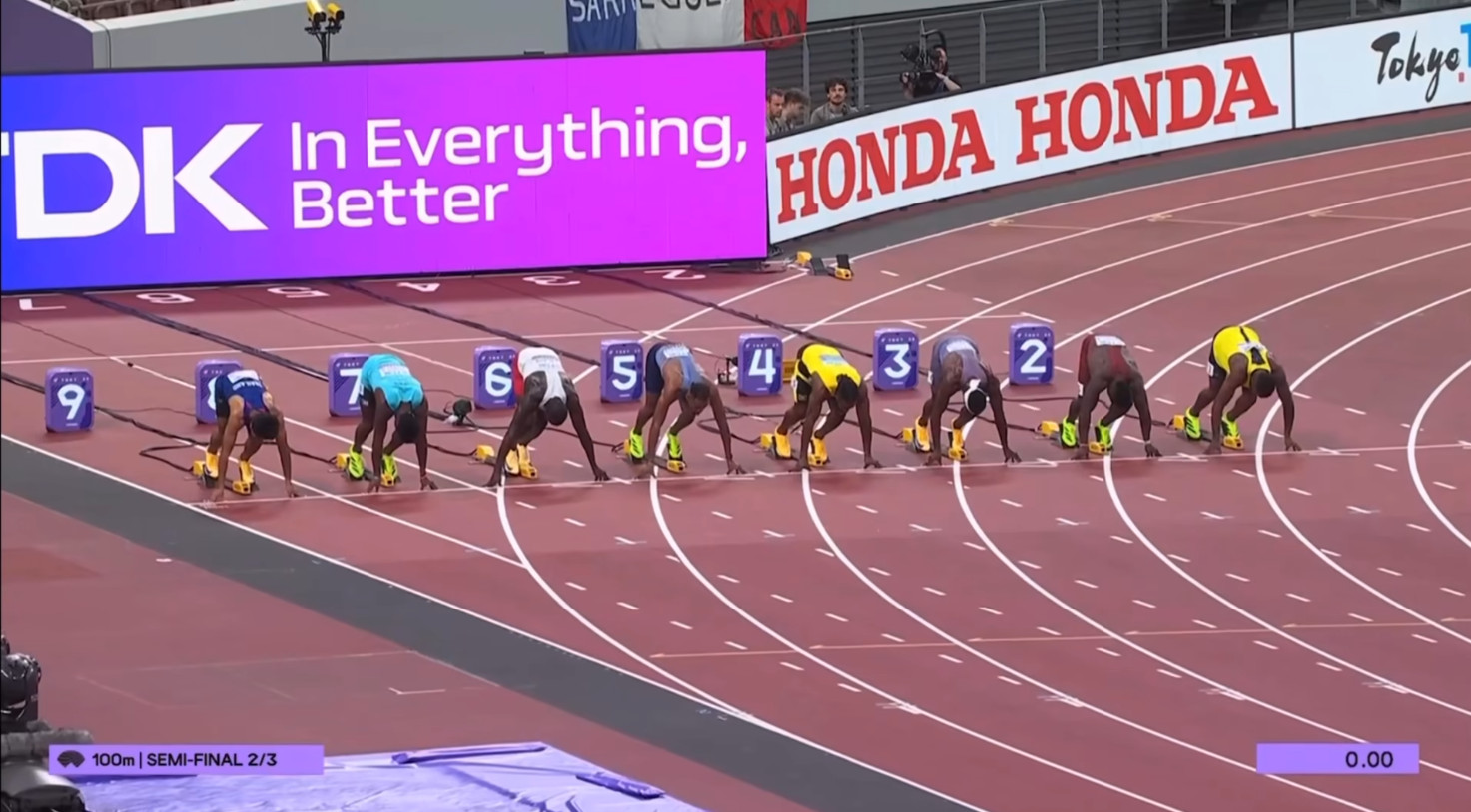 การแข่งขันศึกกรีฑาชิงแชมป์โลก 2025 (World Athletics Championships 2025) ณ สนามกีฬาแห่งชาติญี่ปุ่น กรุงโตเกียว ประเทศญี่ปุ่น เมื่อวันที่ 14 กันยายน 2568 ไฮไลท์อยู่ที่การแข่งขัน 100 เมตร รอบรองชนะเลิศ