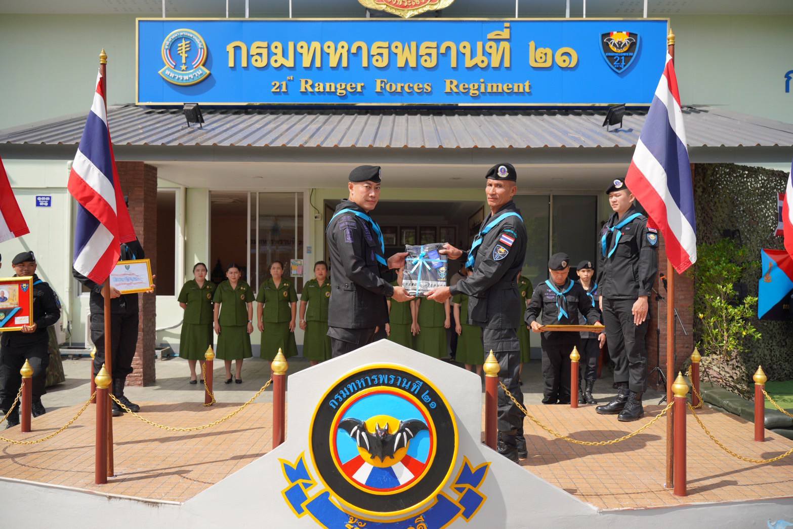 พันเอก อินทราวุธ ทองคำ ผู้บังคับการกรมทหารพรานที่ 21/ผู้บังคับหน่วยเฉพาะกิจกรมทหารพรานที่ 21 พร้อมด้วยคณะนายทหาร, นายสิบ และสมาคมแม่บ้านทหารบก สาขา กรมทหารพรานที่ 21 จัดพิธีเทิดเกียรติและอำลาชีวิตราชการทหาร ประจำปี 2568 ให้กับกำลังพล อาสาสมัครทหารพราน ผู้เกษียณอายุราชการ จำนวน 16 นาย เพื่อให้ผู้ที่อำลาชีวิตราชการ มีความรู้สึกภาคภูมิใจ มีเกียรติ มีศักดิ์ศรี ที่เข้ามาเป็นส่วนหนึ่งของกองทัพบก ที่ได้เสียสละความสุขส่วนตัวทุ่มเทแรงกายแรงใจในการรับใช้ประเทศชาติตลอดระยะเวลาที่ผ่านมา ด้วยความรู้ความสามารถของทุกท่าน ที่ยังเป็นประโยชน์ต่อกองทัพบกและประเทศชาติ เกียรติประวัติ พร้อมทั้งคุณงามความดีที่ท่านได้พากเพียรสร้างสมไว้แก่ กรมทหารพรานที่ 21 จะยังคงจารึกอยู่ในความทรงจำตลอดไป