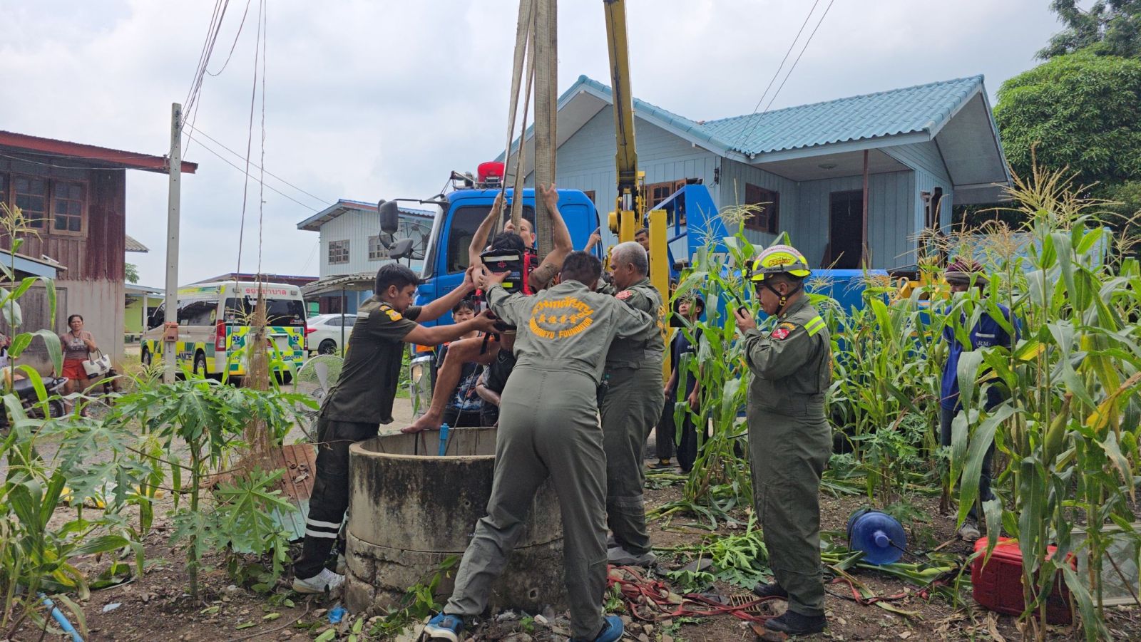 หลังจากนั้น มีเพื่อนบ้านลงไปช่วยเหลือ แต่กลับทำให้ยิ่งแย่ ตะเกียกตะกายเพื่อเอาตัวรอดเกือบตายทั้งคู่ พ่อต้องใช้แกลลอนน้ำมันโยนลงไปเกาะลอยคอ พยุงตัวอยู่ได้ แต่อากาศก้นบ่อน้อย ต้องใช้พัดลมเป่าอากาศช่วยอีก ซึ่งการช่วยเหลือครั้งนี้เป็นไปอย่างทุลักทุเล ต้องขอขอบคุณกู้ภัยฯ ที่สามารถช่วยเหลือชีวิตทั้งคู่ได้ทันเวลา