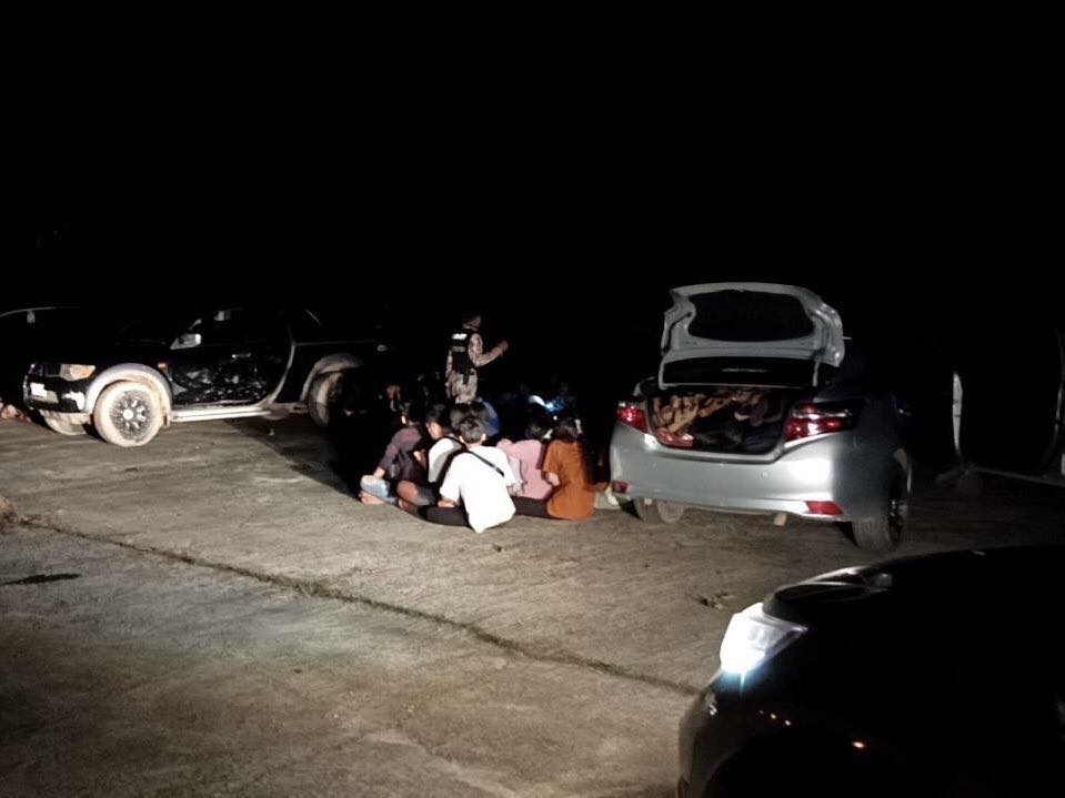 กระทั่งเวลา 01.00 น. ขณะที่เจ้าหน้าที่ชุดจับกุมกำลังลาดตระเวนเฝ้าตรวจ บริเวณ ริมถนนหมายเลข 323 สังเกตพบรถยนต์ จำนวน 3 คัน จอดอยู่บริเวณ วัดอู่ล่อง ต.ท่าขนุน อ.ทองผาภูมิ จ.กาญจนบุรี พร้อมบุคคลต้องสงสัยจำนวนหนึ่ง จึงได้เข้าทำการตรวจสอบ ทันทีที่ผู้ขับขี่รถยนต์สังเกตพบเจ้าหน้าที่ จึงได้วิ่งหลบหนีเข้าไปในป่า หลังจากนั้นเจ้าหน้าที่จึงได้จัดกำลังติดตามผู้กระทำความผิดไป ต่อมาเจ้าหน้าที่ทำการตรวจสอบบริเวณดังกล่าวอย่างละเอียด พบบุคคลต่างด้าวผิดกฎหมาย สัญชาติเมียนมา จำนวน 52 ราย (ชาย 31 ราย และหญิง 21 ราย) ซึ่งทั้งหมดไม่สามารถสื่อสารภาษาไทย และไม่มีเอกสารประจำตัวที่ทางราชการออกให้ เจ้าหน้าที่จึงได้ควบคุมตัวไว้ทั้งหมด
