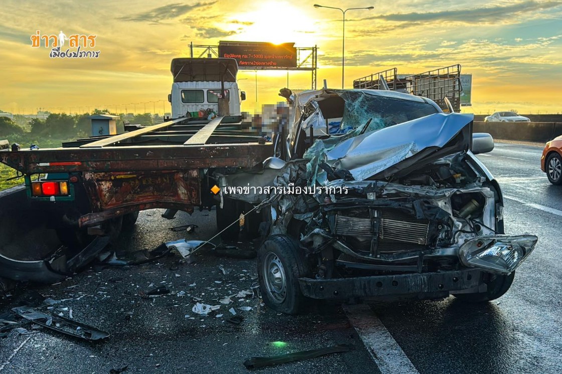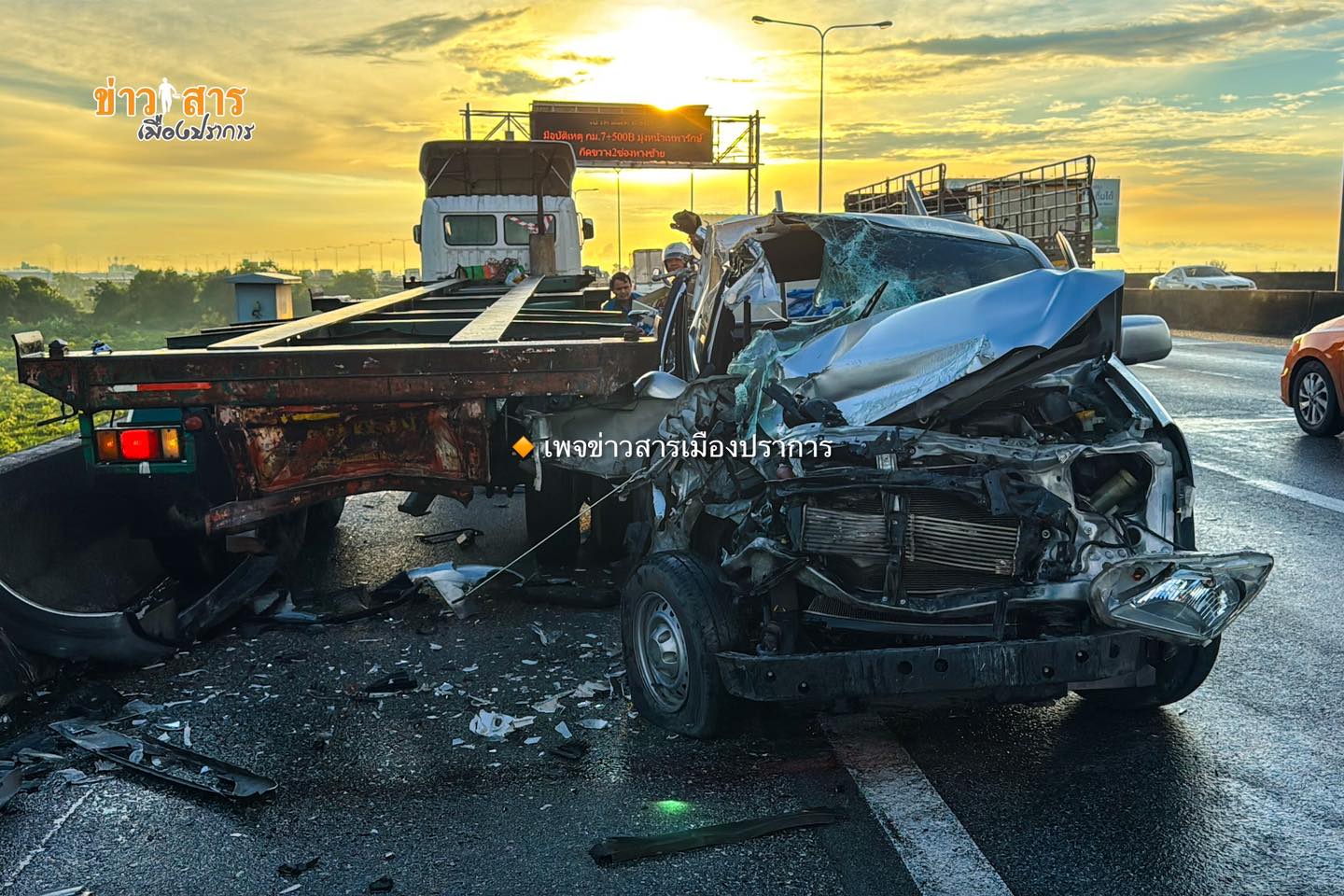 เช้าวันนี้ (17 ก.ย. 68) เกิดอุบัติเหตุรถกระบะ ชนท้ายรถบรรทุกพ่วงที่จอดเสียอยู่บริเวณทางพิเศษกาญจนาภิเษก (บางพลี-สุขสวัสดิ์) ฝั่งจากด่านปากน้ำ มุ่งหน้าบางพลี ก่อนลงเทพารักษ์ ส่งผลให้กีดขวาง 2 ช่องทางซ้าย การจราจรติดขัด