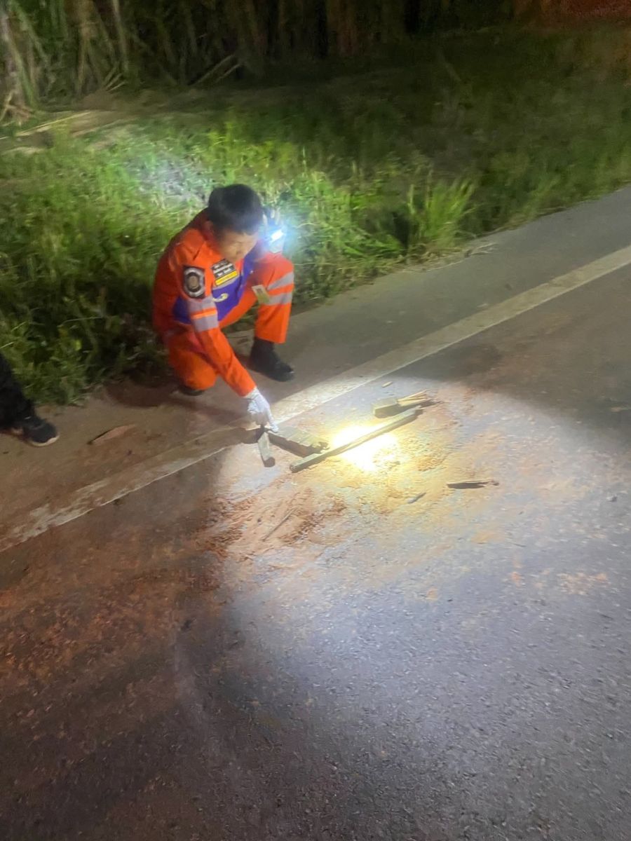 ที่เกิดเหตุ พบรถจักรยานยนต์ ฮอนด้า CBR 650 cc. สีดำ-แดง ยังไม่พบป้ายทะเบียน ล้มคว่ำอยู่ในพงหญ้าข้างทาง ห่างออกไป พบร่างของผู้เสียชีวิต 1 ราย ลักษณะนอนคว่ำหน้า ตรวจสอบเอกสาร เป็นชายไทย อายุ 16 ปี เป็นชาวบ้านหนองกรุศรี