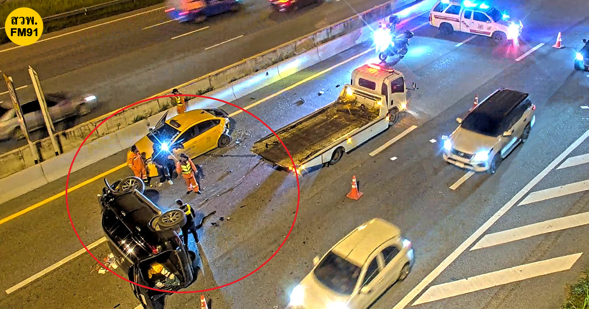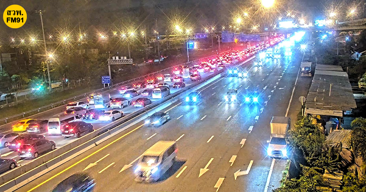19 ก.ย. 68 เวลา 19.15 น. ถ.มอเตอร์เวย์ ขาออก กม. 7+100 มีอุบัติเหตุ กีดขวาง 3 ช่องทาง จนท.อยู่ระหว่างเคลื่อนย้าย ท้ายสะสมถึงกม. 0