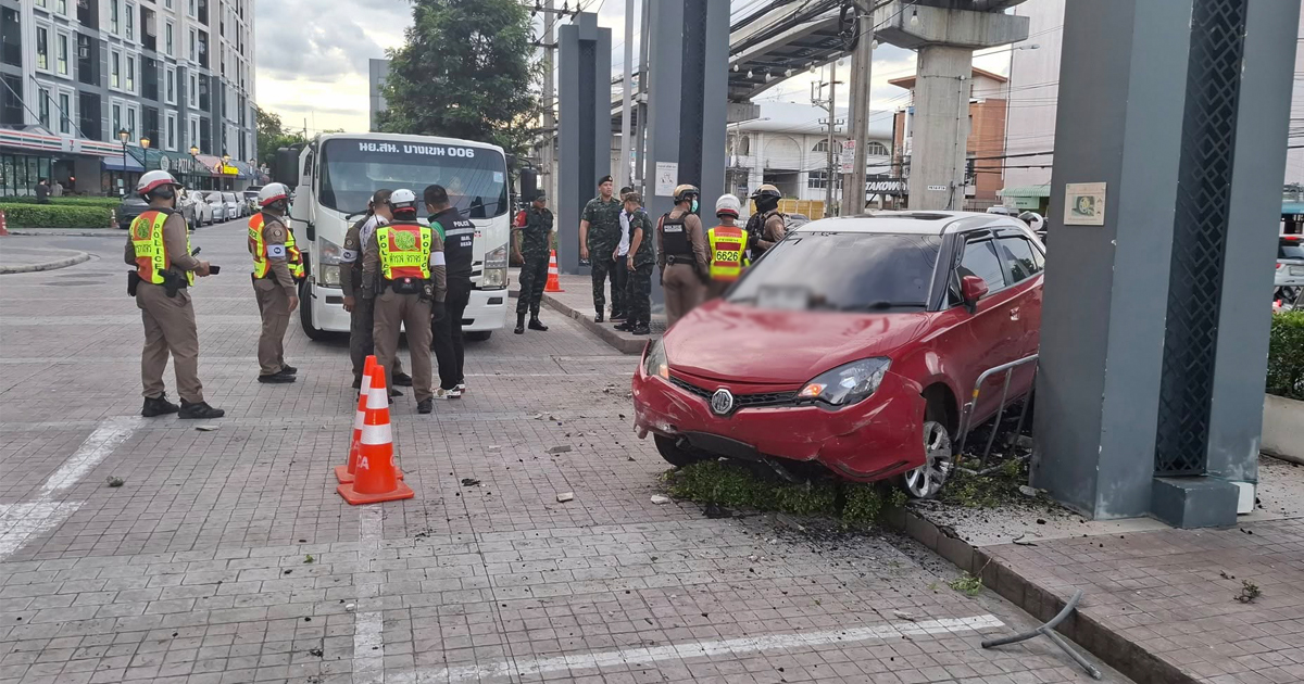 วันนี้ 19 ก.ย.68) เวลาประมาณ 17.15 น. ร.ต.อ.รัตนชัย สลับศรี รอง สว.จราจร สน.บางเขน พร้อมกำลัง เจ้าหน้าที่ตำรวจจราจร สน.บางขน ปฏิบัติหน้าที่อำนวยการจราจร บริเวณจุดกลับ หน้ากรมทหารราบที่ 11 ได้มีเจ้าหน้าที่ทหารมาขอความช่วยเหลือ ว่ามีรถยนต์ต้องสงสัยขับเข้าไปในกองการบินศูนย์การเคลื่อนย้าย กองทัพบก และไม่ยอมให้ตรวจค้นและได้ขับหลบหนีออกมา หลบหนีมุ่งหน้าไปทางมหาวิทยาลัยศรีปทุม จึงได้แจ้งสกัดจับเมื่อไปถึงสะพานข้ามคลองบางบัว พบว่ารถยนต์คันดังกล่าว ได้เลี้ยววกกับย้อนศรมุ่งหน้าวงเวียนบางเขน และได้เฉี่ยวชนกับรถประชาชน สัญจรไปบ้านทำให้มีผู้ได้รับบาดเจ็บ เป็น ชาย 1 ราย รถยนต์ได้รับความเสียหายจำนวน 4 คัน รถจักรยานยนต์ได้รับความเสียหายจำนวน 2 คัน รถยนต์คันดังกล่าวด้วยครับหลบหนีมุ่งหน้าไปทางวงเวียนบางเขนเลี้ยวซ้ายออกถนนแจ้งวัฒนะขาออก เจ้าหน้าที่ตำรวจได้ไล่ติดตาม ไปพบรถยนต์คันดังกล่าวเสียหลักปีนฟุตบาท หน้าพลัมคอนโด และได้ชนกำแพงทรัพย์สินของพลัมคอนโดได้รับความเสียหาย ส่วนรถผู้ก่อเหตุได้รับความเสียหายยางซ้ายล้อหน้าแตกจึงขับต่อไปไม่ได้ เจ้าหน้าที่ตำรวจและเจ้าหน้าที่ทหารจึงได้ควบคุมตัวและตรวจค้นรถยนต์และบุคคลดังกล่าว ผลการตรวจค้นพบวัตถุออกฤทธิ์ต่อจิตประสาทประเภท 2 (เคตามีน) จำนวน 3 ถุงเล็ก ในกระเป๋ากางเกงด้านหน้าข้างขวามือของผู้ที่ก่อเหตุในขณะตรวจค้น จึงได้นำตัวผู้ก่อเหตุพร้อมของกลางส่งพนักงานสอบสวน เบื้องต้นได้ทำการตรวจวัดปริมาณแอลกอฮอล์ ผลปรากฏว่าไม่พบ จึงได้จัดทำบันทึกจับกุมพร้อมของกลางส่งพนักงานสอบสวนเพื่อดำเนินคดีในส่วนที่เกี่ยวข้องต่อไป