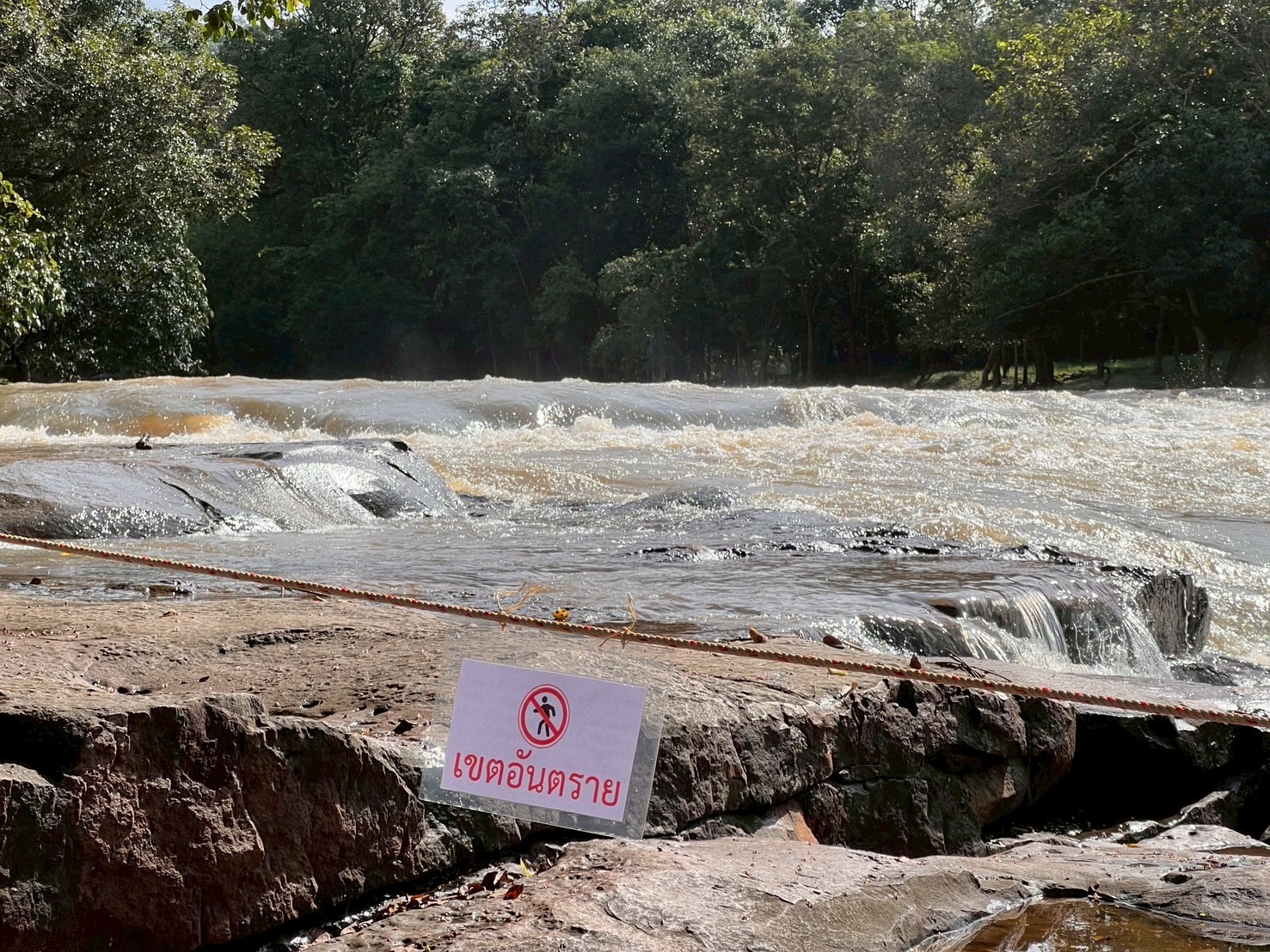 อุทยานแห่งชาติน้ำตกตาดโตน ประกาศแจ้งเตือนนักท่องเที่ยว งดเล่นน้ำใกล้ผาน้ำตก หลังฝนตกหนักต่อเนื่องจนเกิดน้ำป่าไหลหลากหนักสุดในรอบปี