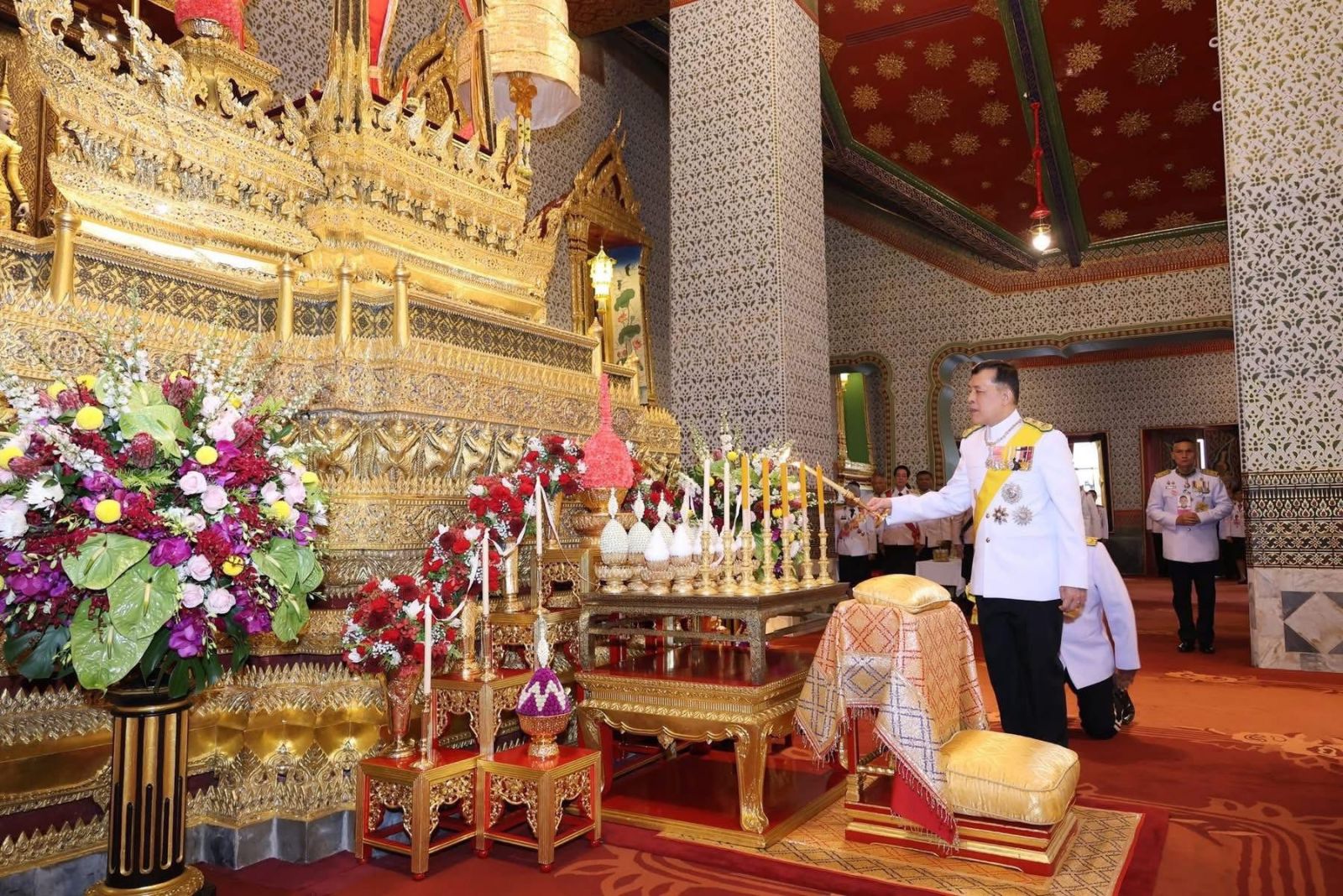 ถวายอดิเรก ถวายพระพรลา ต่อจากนั้น ทรงทอดผ้าไตรอีก ๑๑ ไตร พระสงฆ์สดับปกรณ์ เสร็จแล้ว ทรงกราบพระพุทธรูปประจำพระชนมวารคู่พระบรมอัฐิพระบาทสมเด็จพระปรเมนทรมหาอานันทมหิดล พระอัฐมรามาธิบดินทร ที่หน้าพระที่นั่งบุษบกมาลา ทรงกราบถวายบังคมพระบรมอัฐิพระบาทสมเด็จพระปรเมนทรมหาอานันทมหิดล พระอัฐมรามาธิบดินทร ที่หน้าพระแท่นพระนพปฎลมหาเศวตฉัตร ทรงรับการถวายความเคารพของผู้มาเฝ้าทูลละอองธุลีพระบาท แล้วเสด็จออกจากพระที่นั่งอมรินทรวินิจฉัย ไปประทับรถยนต์พระที่นั่งเสด็จพระราชดำเนินกลับ