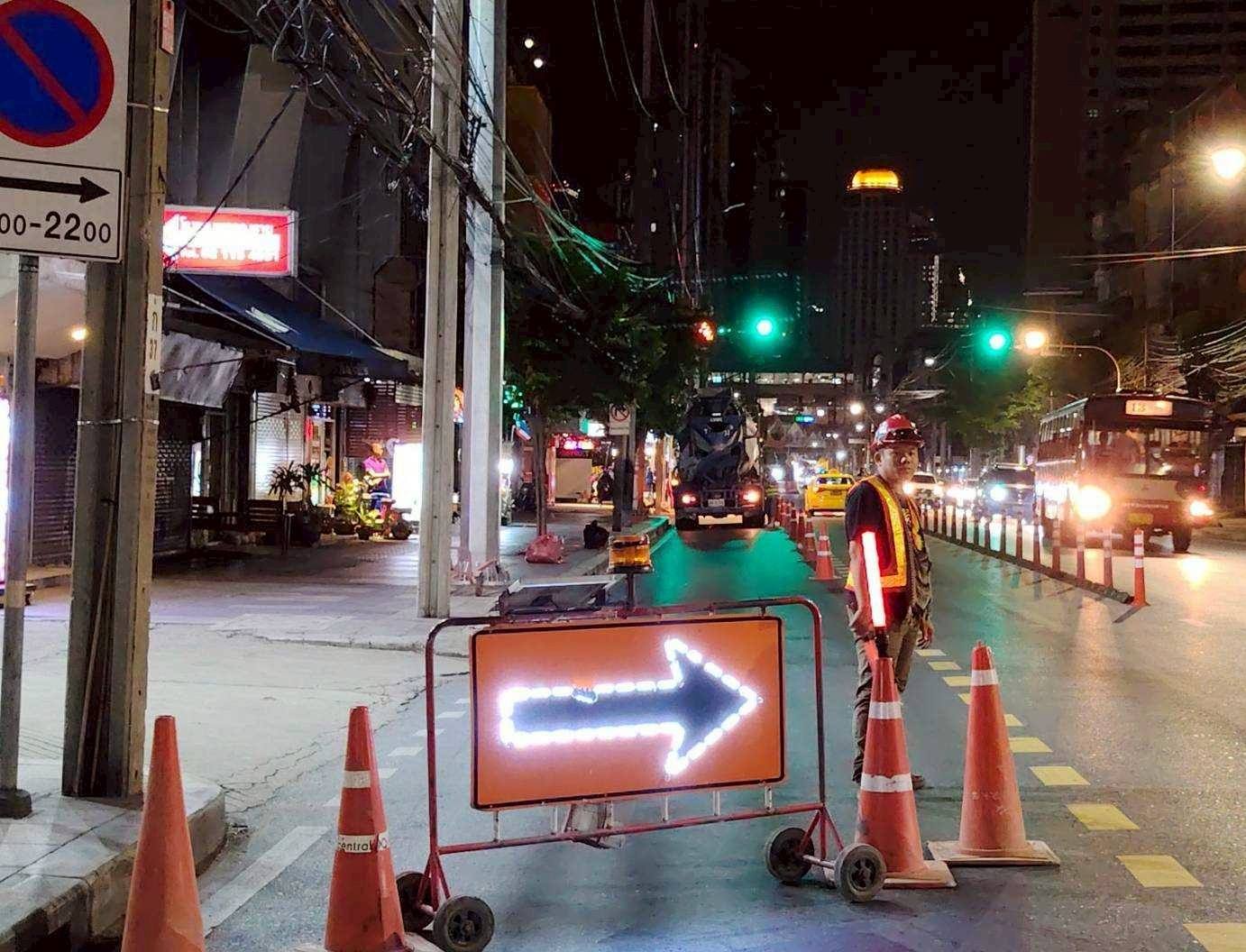 การรถไฟฟ้าขนส่งมวลชนแห่งประเทศไทย (รฟม.) โดยสำนักงานความปลอดภัย อาชีวอนามัยและสภาพแวดล้อมในการทำงาน (สปอ.) ลงพื้นที่ตรวจสอบการดำเนินงานด้านความปลอดภัยในการก่อสร้าง โครงการรถไฟฟ้าสายสีส้ม ช่วงบางขุนนนท์ – มีนบุรี (สุวินทวงศ์) ช่วงเวลากลางคืน (Night Audit) โดยลงพื้นที่บริเวณสถานีอนุสาวรีย์ประชาธิปไตย สถานีหลานหลวง สถานียมราช สถานีราชเทวี สถานีประตูน้ำ และสถานีราชปรารภ โดยได้ตรวจสอบการติดตั้งแผงผ้าใบ ไฟส่องสว่าง ไฟสัญญาณเตือน และป้ายเตือนต่างๆ ตามแนวเขตก่อสร้าง ให้มั่นคงแข็งแรง อยู่ในตำแหน่งที่ปลอดภัย สามารถเห็นได้อย่างชัดเจน การเก็บวัสดุอุปกรณ์ที่ไม่ใช้แล้วให้เรียบร้อย การจัดวางแนวแบริเออร์ (Barriers) โดยแนวแบริเออร์จะต้องอยู่ภายในเขตพื้นที่ที่กำหนดเพื่อไม่ให้ล้ำเข้าพื้นผิวจราจร ซึ่งเป็นการป้องกันอุบัติเหตุที่อาจเกิดขึ้นจากการใช้ถนนในบริเวณดังกล่าว พร้อมกำชับให้เจ้าหน้าที่ทุกคนสวมใส่อุปกรณ์คุ้มครองความปลอดภัยส่วนบุคคลให้ครบถ้วนตลอดระยะเวลาที่ปฏิบัติงาน และปฏิบัติตามมาตรฐานความปลอดภัยที่กำหนดอย่างเคร่งครัด