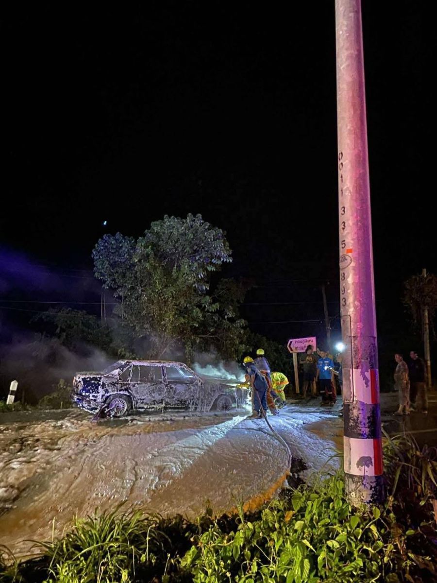 ไฟไหม้รถยนต์ริมถนนหมายเลข 11 เสียหายวอดทั้งคัน โชคดีไร้บาดเจ็บหรือเสียชีวิต จ.อุตรดิตถ์