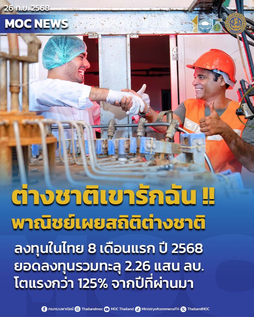 สิงหาคม ‘68 สุดพีค เดือนเดียวต่างชาติลงทุนในไทยกว่า 6.6 หมื่นล้านบาท รวม 8 เดือน ปี ‘68 ต่างชาติลงทุนรวมแตะ 2.26 แสนล้านบาท เพิ่มขึ้นจากปี ‘67 กว่า 1.25 แสนล้านบาท หรือ เพิ่มขึ้น 125%