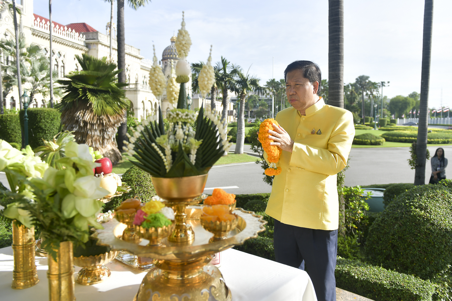 ก่อนที่รัฐมนตรีประจำสำนักนายกรัฐมนตรี นำคณะลงมาสักการะศาลพระภูมิเจ้าที่ ศาลตา ศาลยาย ยังบริเวณด้านล่าง ซึ่งถือเป็นสิ่งศักดิ์สิทธิ์ที่เคารพนับถือภายในทำเนียบรัฐบาล เพื่อความเป็นสิริมงคลในการทำงาน ทั้งนี้ การเข้าสักการะสิ่งศักดิ์สิทธิ์ถือเป็นธรรมเนียมปฏิบัติสำหรับผู้ที่เข้ารับตำแหน่งใหม่ เพื่อเสริมสร้างขวัญกำลังใจ และขอพรให้การทำงานราบรื่นและประสบความสำเร็จ