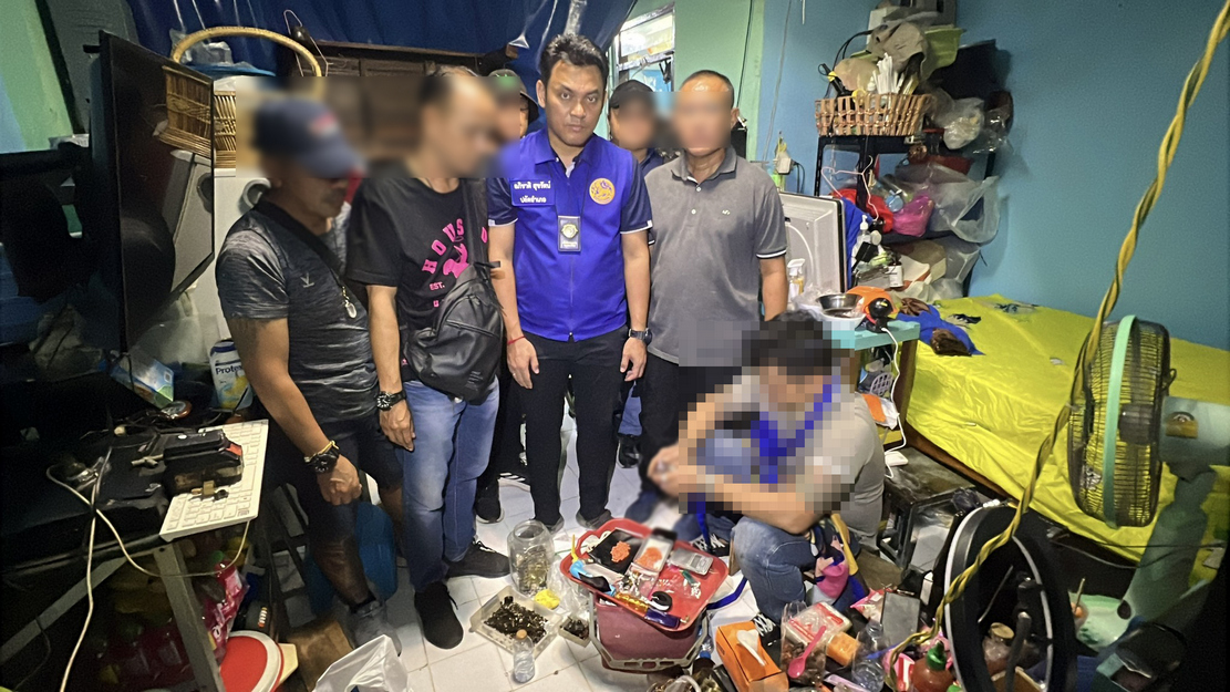 จากการลงพื้นที่ตรวจสอบพบว่ามีการมั่วสุมและลักลอบขายยาเสพติดจริง หลังจากเจ้าหน้าที่นำกำลังเฝ้าสังเกตการณ์ พบหญิงต้องสงสัยรายหนึ่งทราบชื่อภายหลังคือ น.ส.เอ (นามสมมุติ) อายุ 45 ปี จึงแสดงตัวและพาไปตรวจค้นภายในห้องพัก พบยาบ้าจำนวน 5 เม็ด จากนั้นได้ทำการขยายจนกระทั่งสามารถจับกุมตัว นายกอ (นามสมมุติ) อายุ 40 ปี ชาว จ.ชัยนาท มีพฤติกรรมขายก๋วยเตี๋ยวบังหน้า เวลานำยาบ้าไปส่งให้กับลูกค้าจะใส่ผ้ากันเปื้อนไปด้วยทุกครั้งเพื่อตบตาเจ้าหน้าที่ จากการตรวจค้นพบยาบ้าอยู่ในผ้ากันเปื้อนบรรจุอยู่ในซองสีน้ำเงินจำนวน 5 ซอง รวมทั้งหมด 1,000 เม็ด และได้ไปค้นที่บ้านพักย่าน ต.บางรักพัฒนา อ.บางบัวทอง จ.นนทบุรี พบยาบ้าอีกจำนวน 307 เม็ด ยาไอซ์จำนวน 4.61 กรัม จึงยึดทั้งหมดไว้เป็นของกลาง
