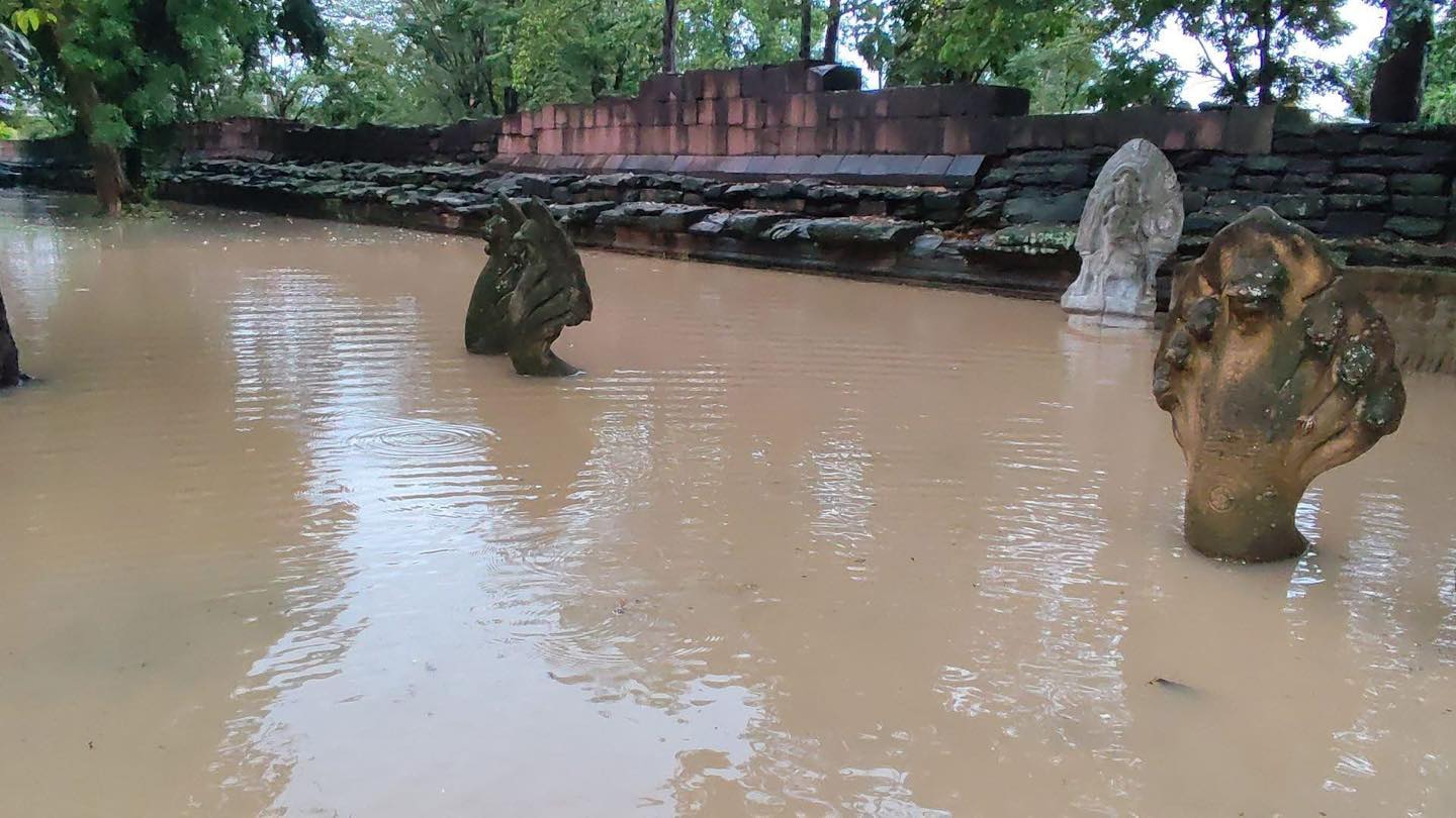 สถานการณ์น้ำท่วมใน อ.พิมาย จ.นครราชสีมา ยังคงวิกฤติ ล่าสุด “ปราสาทหินพิมาย” มรดกทางวัฒนธรรมสำคัญ ถูกน้ำท่วมซ้ำอีกครั้งในรอบเดือนนี้ รวมแล้วเป็นครั้งที่ 3 ตลาดสด ถนน และบ้านเรือนประชาชนได้รับผลกระทบถ้วนหน้า