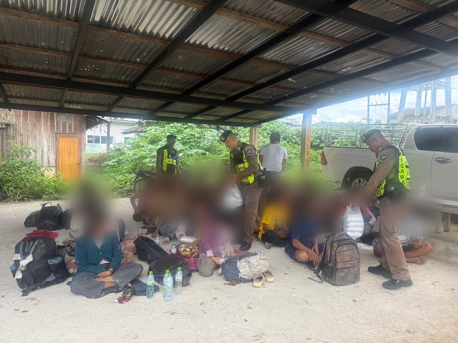 ไล่ล่าขบวนการลักลอบขนแรงงานข้ามชาติ ซิ่งหนีจนยางแตก คนขับทิ้งรถหนีเข้าป่า พบแรงงาน 26 ชีวิต อัดแน่นกระบะตู้ทึบ