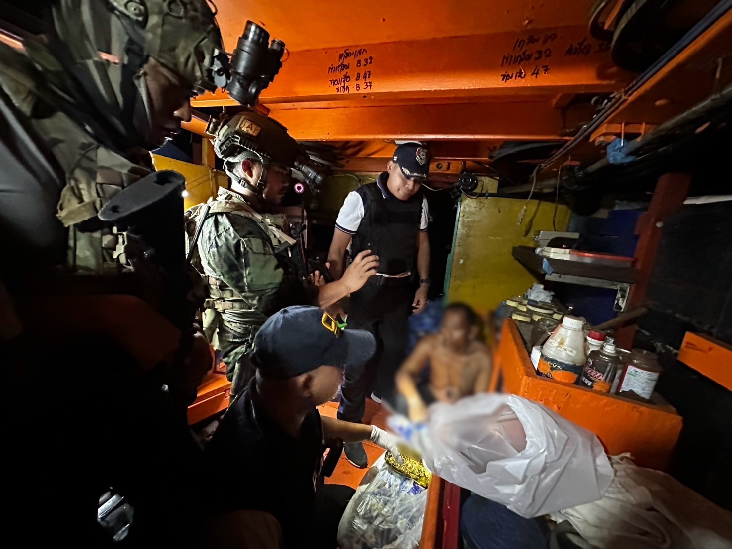 โดยจับกุมได้บนเรือสัญชาติไทย ที่จอดอยู่บริเวณห่างจากปลายท่าเรือฉลอง 360 เมตร ตั้งอยู่ที่ ต.ฉลอง อ.เมืองภูเก็ต จ.ภูเก็ตพฤติการณ์ เมื่อวันที่ 24 ก.ย.68 เจ้าหน้าที่ได้ตรวจพบเรือสัญชาติไทย จอดอยู่บริเวณท่าเรือฉลอง ต.ฉลอง อ.เมืองภูเก็ต จ.ภูเก็ต โดยเรือลำดังกล่าวได้แล่นออกมาจาก จ.ระนอง ติดลมมรสุมบริเวณอ่าวฉลอง ใกล้กับท่าเรือฉลอง ตั้งแต่วันที่ 22 ก.ย.68 โดยเรือดังกล่าวมีลักษณะผิดปกติจากเรือทั่วไป คือ ไม่แสดงการเข้าออกปกติ, บุคคลในเรือมีท่าทีพิรุธ ลุกลี้ลุกลน คล้ายจะกระทำการบางอย่าง