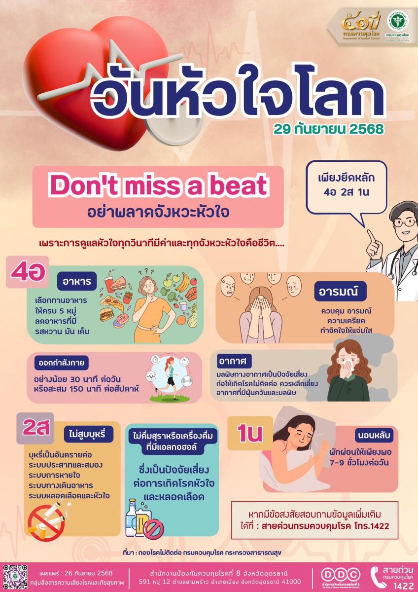 29 กันยายน ของทุกปี เป็นวันหัวใจโลก ซึ่งถือเป็นอีกหนึ่งวันสำคัญที่ไม่ควรมองข้าม เพราะโรคหัวใจเป็นสาเหตุการเสียชีวิตอันดับต้น ๆ ของคนทั่วโลก Don't miss a beat อย่าพลาดจังหวะหัวใจ
