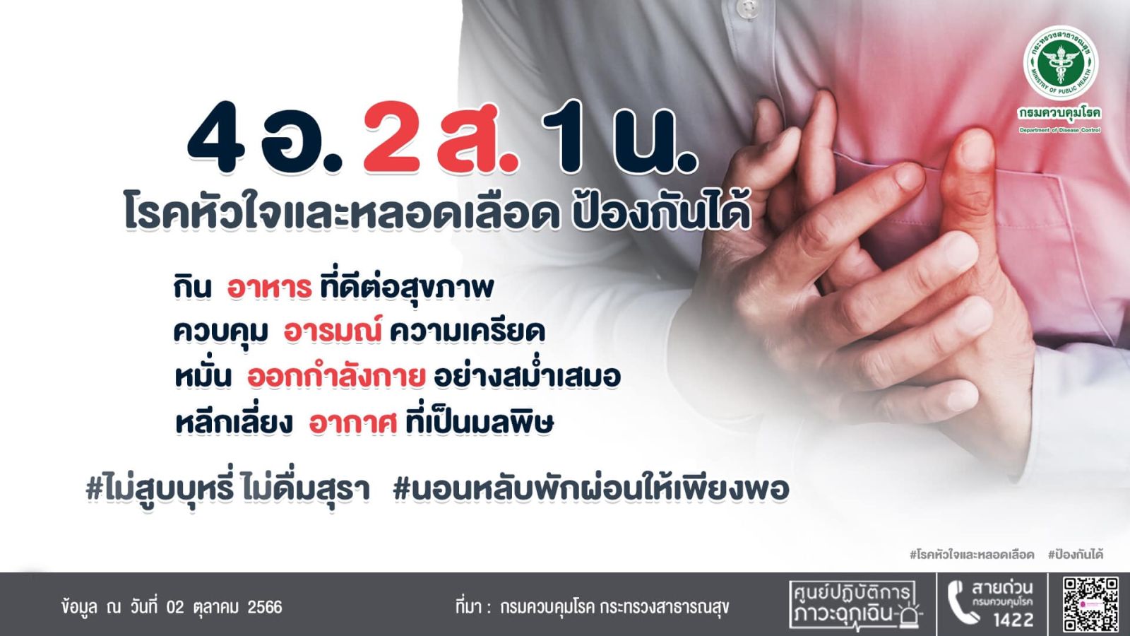 โรคหัวใจและหลอดเลือด ป้องกันได้ด้วย 4อ. 2ส. 1น.