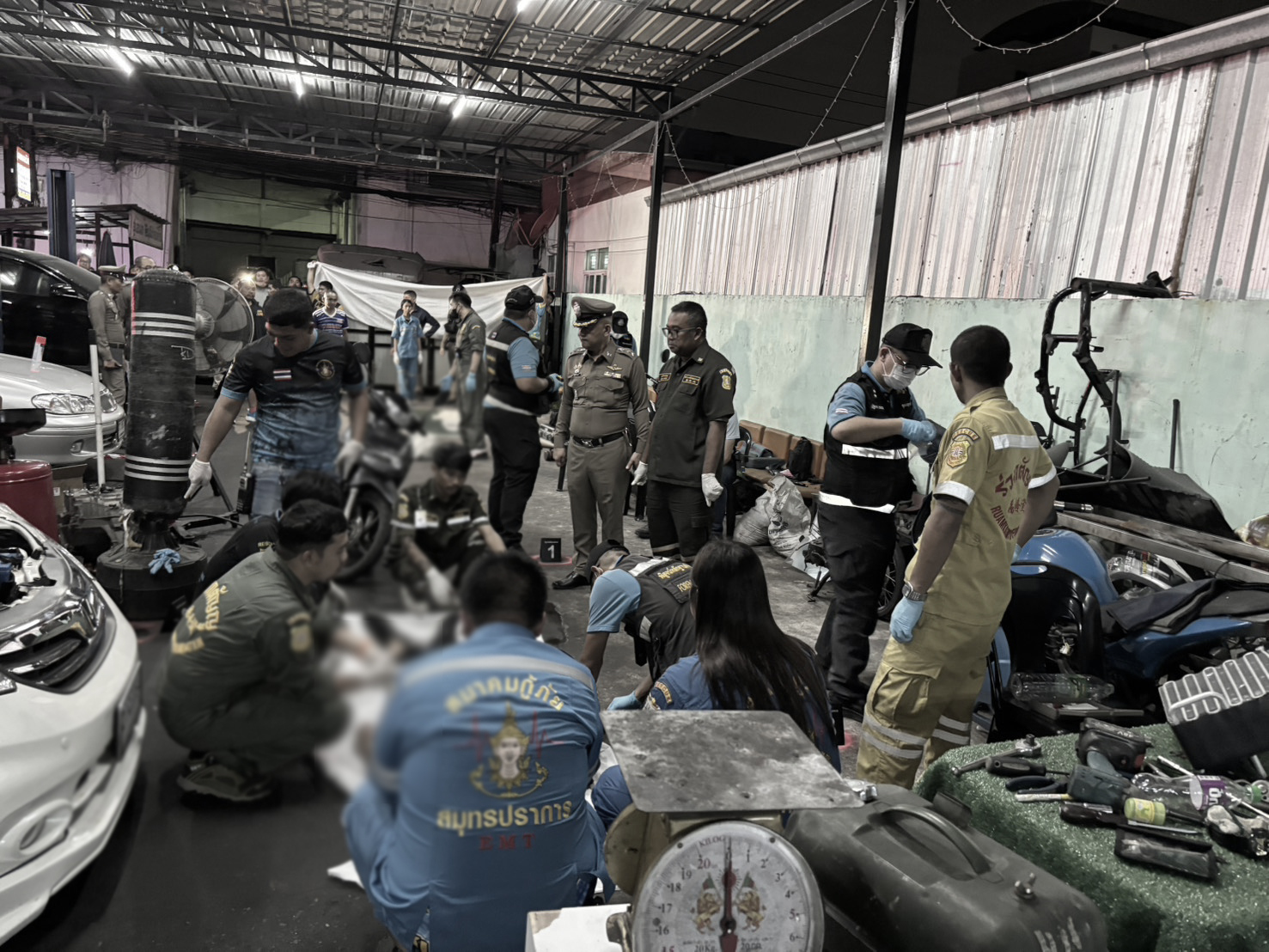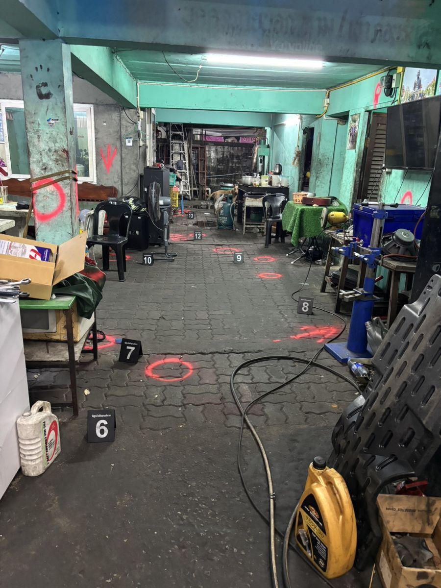 เหตุยิงกันสนั่น ปลอกกระสุนนับสิบตกเกลื่อนภายในอู่ซ่อมรถยนต์ ย่านเทพารักษ์ เมืองสมุทรปราการ มีทั้งผู้บาดเจ็บและเสียชีวิต