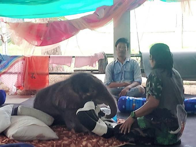 ด้านการเคลื่อนไหว ลูกช้างป่ามีกำลังในการถีบตัวเพื่อพยุงให้ยืนขึ้นบ่อยครั้ง โดยมีสัตวแพทย์และเจ้าหน้าที่คอยช่วยเหลือพยุงตัวและทำกายภาพบำบัดด้วยการยืดเหยียดเท้าขณะเดินอย่างสม่ำเสมอ