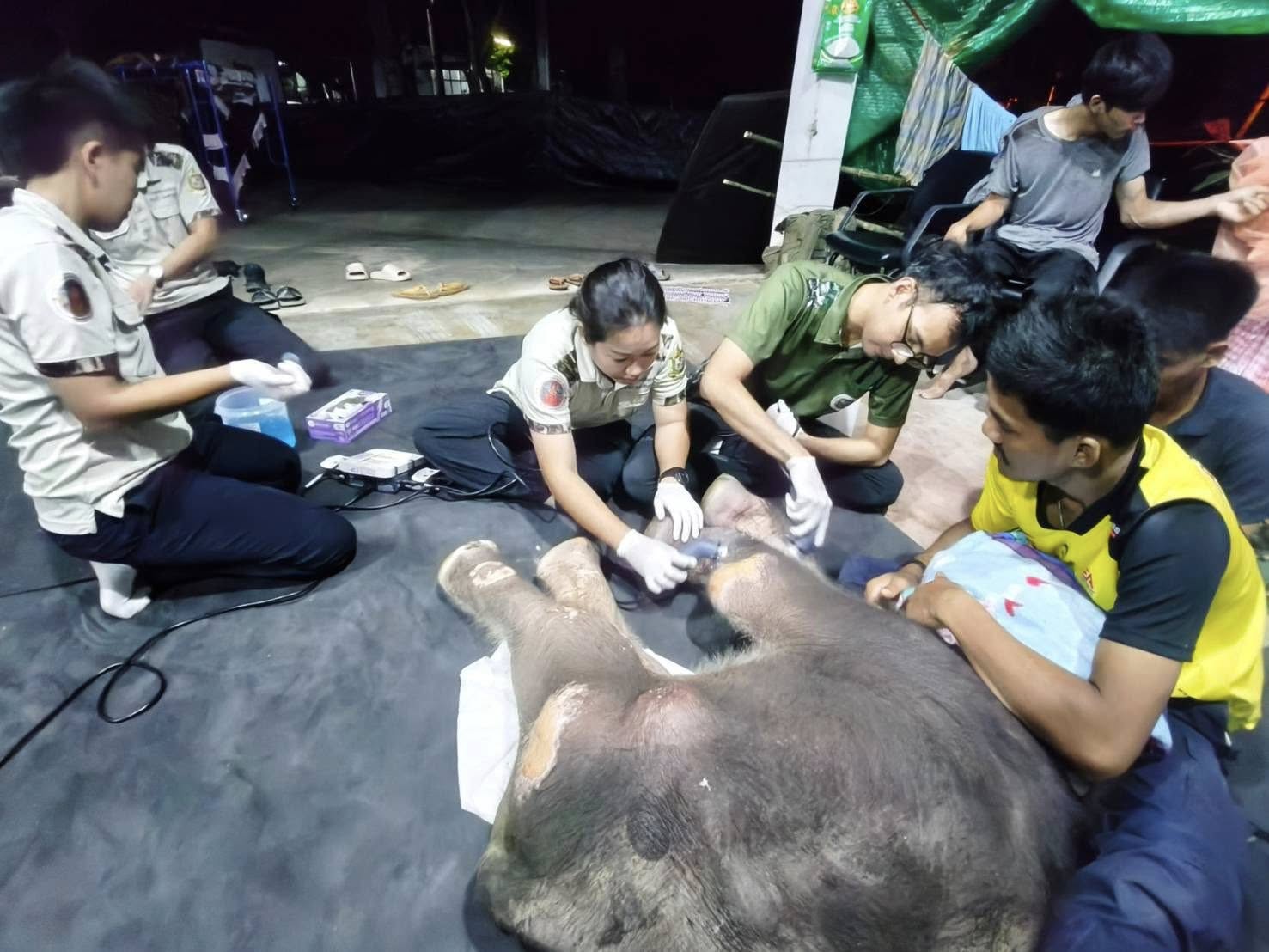 ความคืบหน้าด้านสุขภาพและการรักษา ทีมสัตวแพทย์เปิดเผยรายละเอียดการติดตามอาการประจำวัน ดังนี้ อาการทั่วไป การกินและการขับถ่าย ลูกช้างกินนมและน้ำได้ดี การขับถ่ายปกติ อุจจาระมีลักษณะกึ่งเหลวคล้ายครีม (สีเขียวขี้ม้าอ่อน) และปัสสาวะสีใส ส่วนบาดแผลบริเวณสะดือพบหนองลดลง และไม่พบหนองในเล็บแล้ว แต่ยังคงต้องมีการล้างทำความสะอาดแผลอย่างต่อเนื่อง