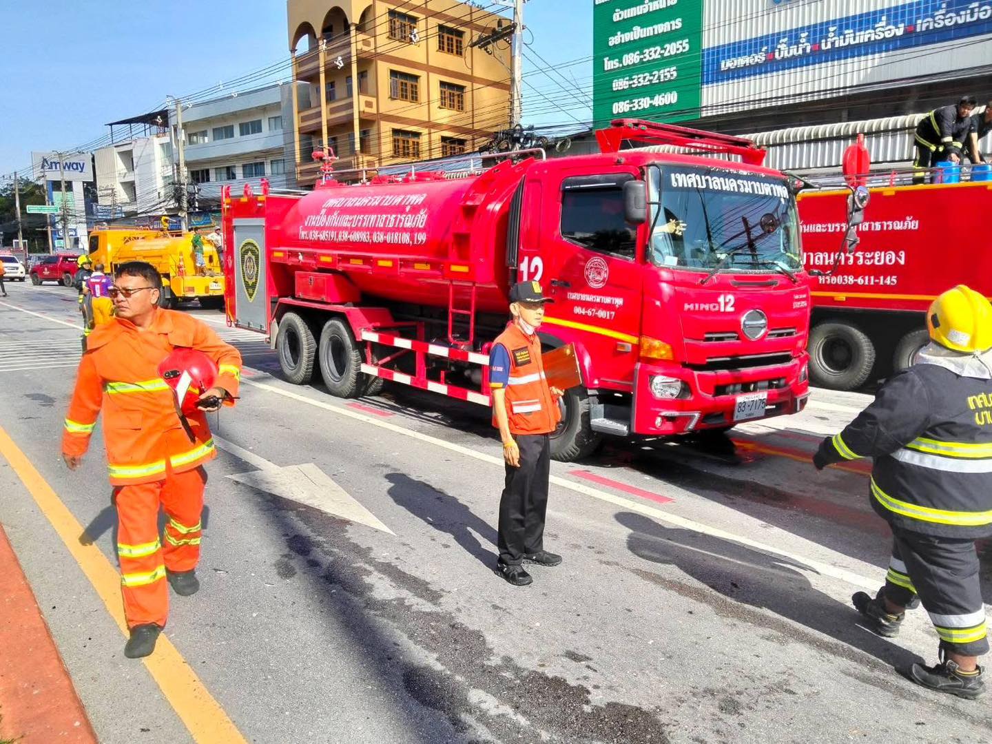ความคืบหน้ากรณีเกิดเหตุเพลิงไหม้ร้านจำหน่ายน้ำมันเครื่อง เครื่องมือช่าง และอุปกรณ์การเกษตร ริมถนนสุขุมวิทนครระยอง 29 บริเวณสี่แยกโรงแรมคามิโอ เขตเทศบาลนครระยอง เหตุเกิดเมื่อเวลา 07.45 น. โดยยังคงมีเปลวไฟลุกไหม้ภายในตัวโกดัง เจ้าหน้าที่ดับเพลิงต้องทุบกำแพงด้านข้างโกดัง เพื่อให้สามารถเข้าไปฉีดน้ำภายในได้สะดวกขึ้น พร้อมเร่งควบคุมสถานการณ์อย่างเต็มที่เพื่อไม่ให้ไฟลุกลามไปยังปั๊มน้ำมันที่อยู่ติดกัน ซึ่งมีจุดเก็บน้ำมันฝังอยู่ใต้ดินประมาณ 48,000 ลิตร