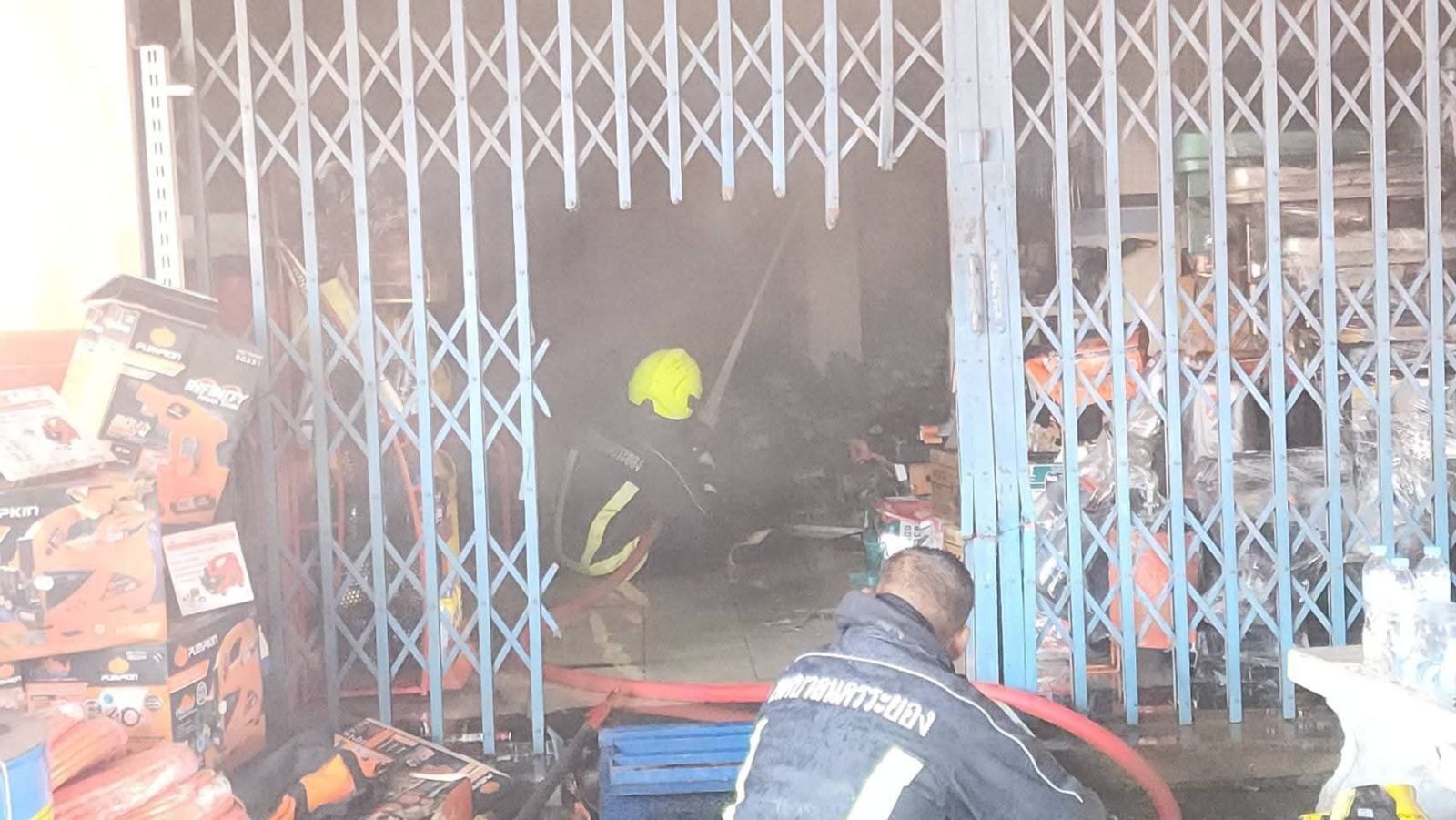 จากเหตุเพลิงไหม้ร้านจำหน่ายน้ำมันเครื่อง เครื่องมือช่าง และอุปกรณ์การเกษตร กลางเมืองระยอง ช่วงเช้าที่ผ่านมา เจ้าหน้าที่ต้องทุบกำแพงโกดัง เพื่อให้สามารถเข้าไปฉีดน้ำสกัดเพื่อให้ได้สะดวกขึ้น