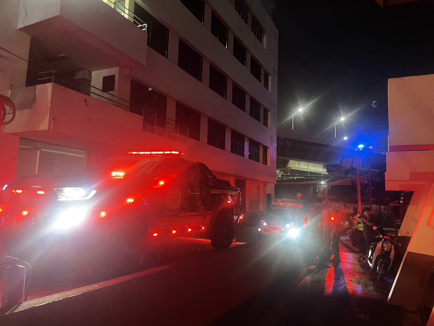 หลังเกิดเหตุ เจ้าหน้าที่สถานีดับเพลิง เจ้าหน้าที่กู้ภัย และเจ้าหน้าที่ทหาร ได้เข้าดำเนินการระงับเหตุอย่างเร่งด่วน รวมถึงสนับสนุนอำนวยความสะดวกด้านการจราจรในพื้นที่ เพื่อให้การเข้าถึงและปฏิบัติหน้าที่ของเจ้าหน้าที่เป็นไปโดยราบรื่น เมื่อเจ้าหน้าที่ไปถึง พบว่ามีเปลวเพลิงและกลุ่มควันบริเวณจุดเกิดเหตุ แต่สามารถเข้าควบคุมและดับเพลิงได้ในเวลาต่อมา