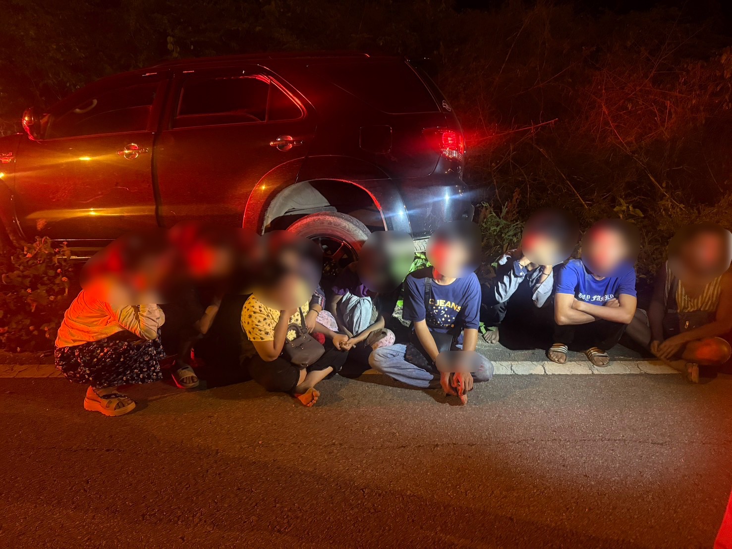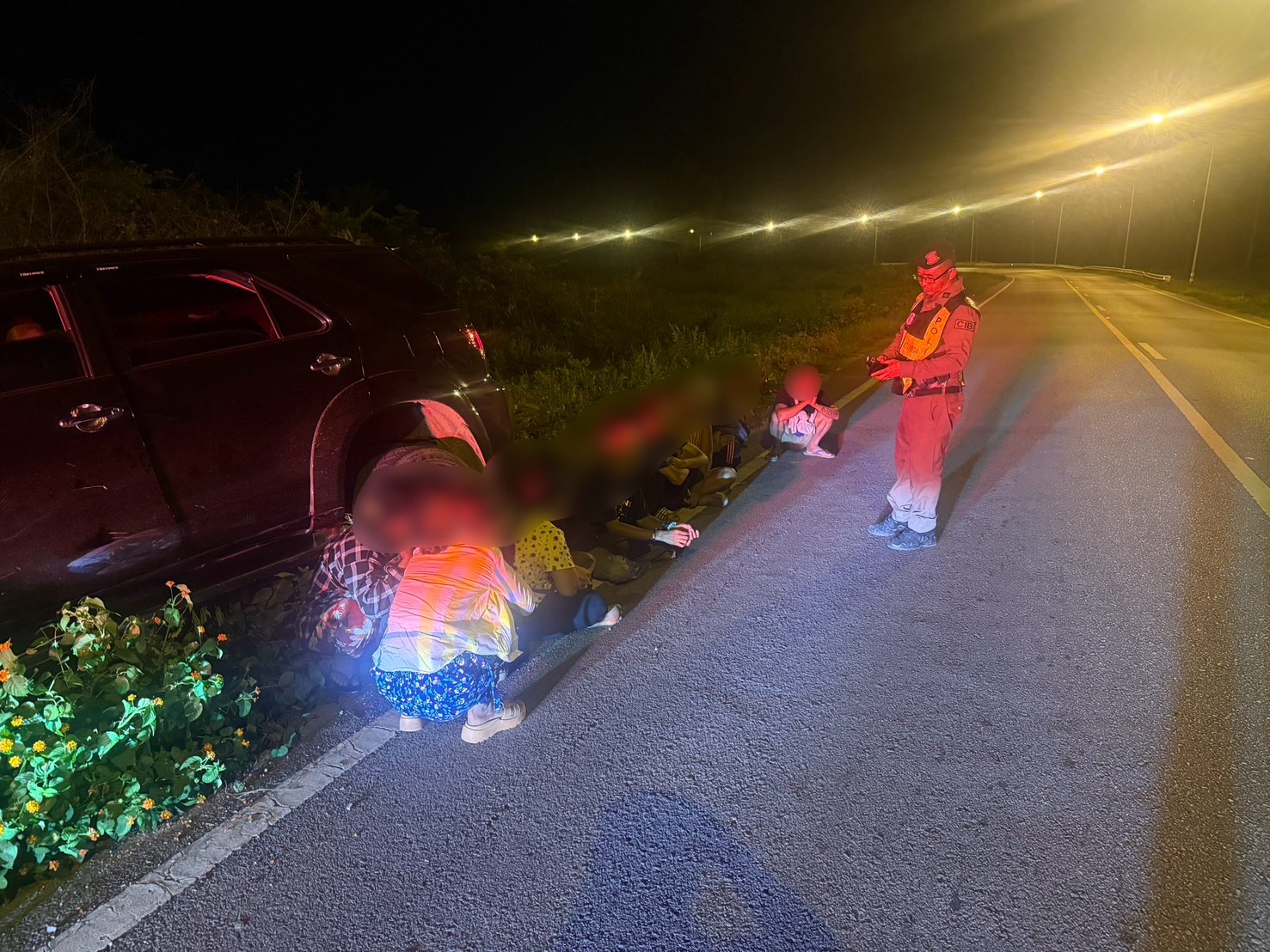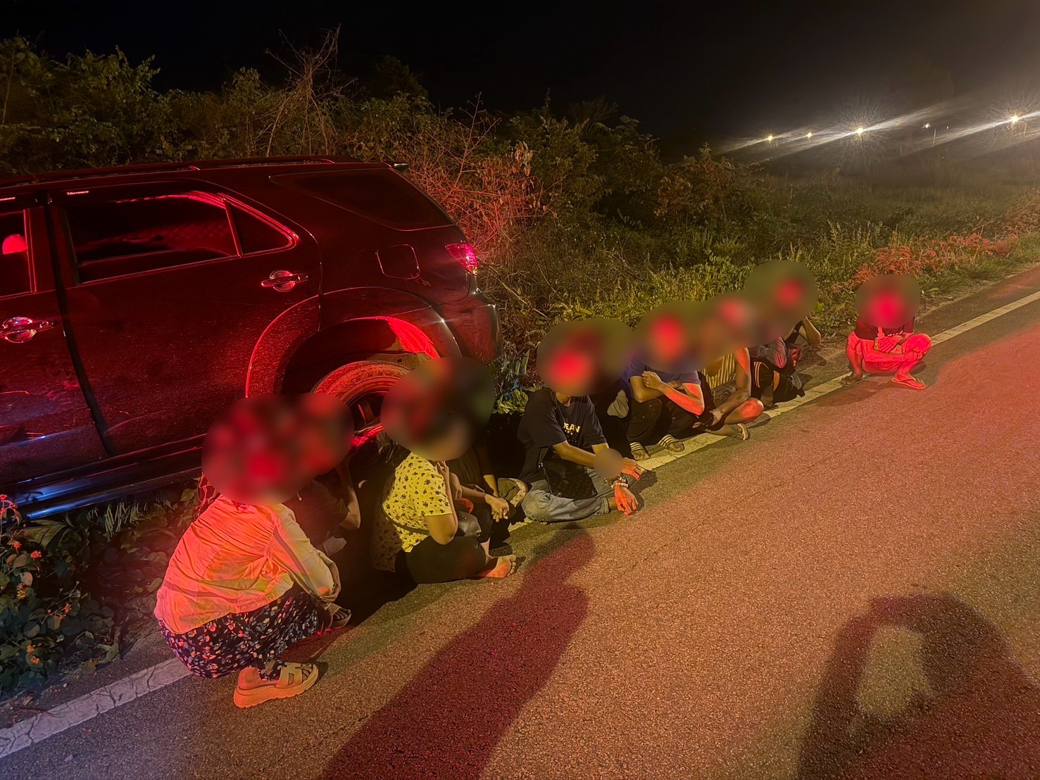 ตำรวจทางหลวง ไล่ล่าขบวนการลักลอบขนต่างด้าว อัดกันมาในรถยนต์ 11 คน