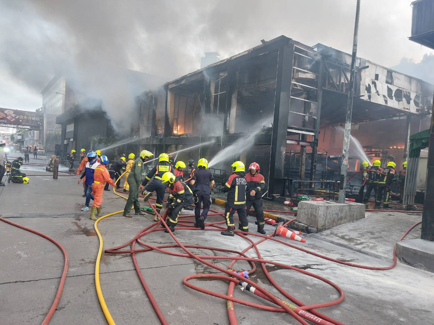 เวลา 17.17 น. ที่เกิดหตุ ลักษณะที่เกิดเหตุเป็นอาคารชั้นเดียว เจ้าหน้าที่อยู่ระหว่างใช้น้ำทำการดับ