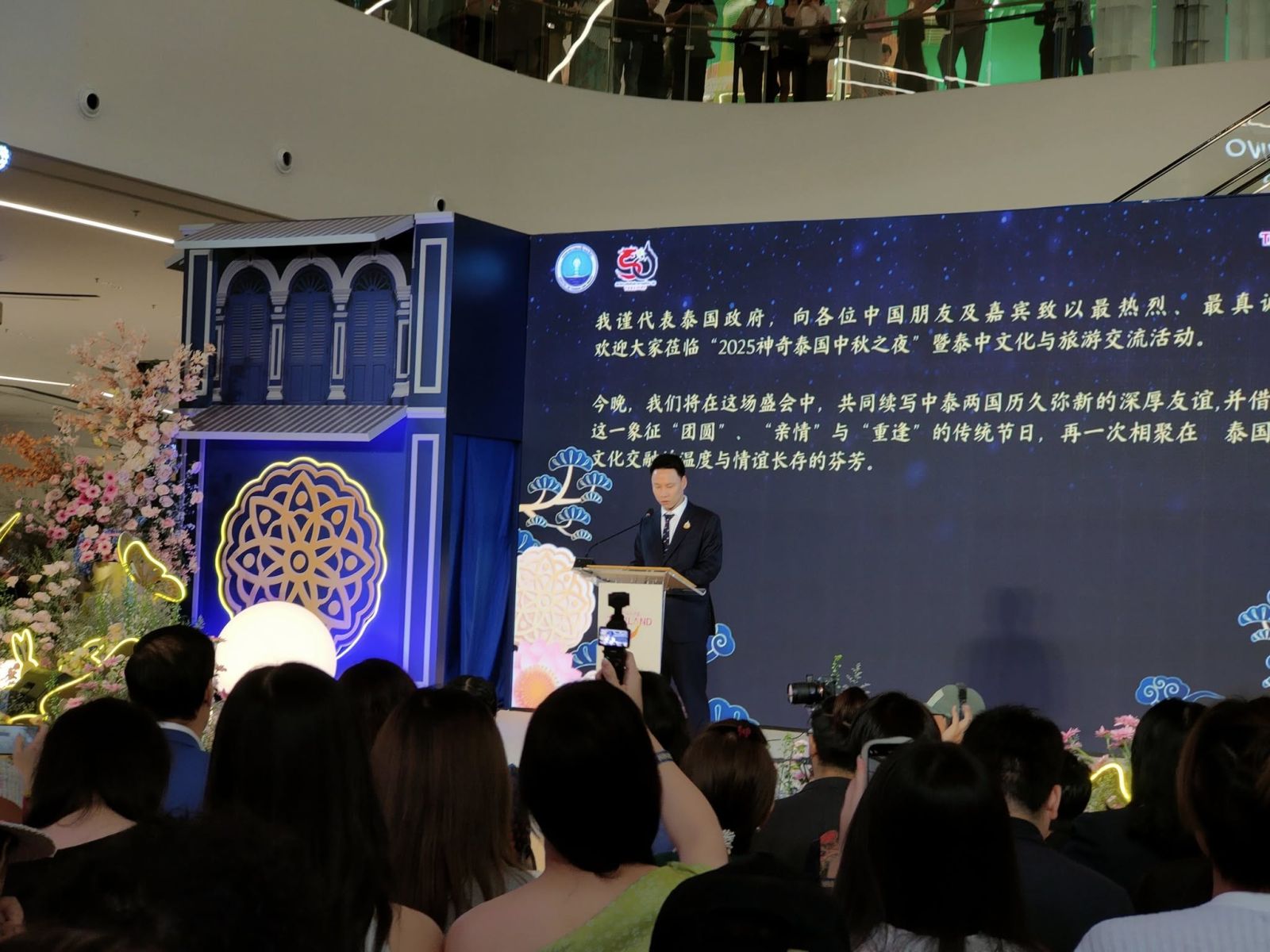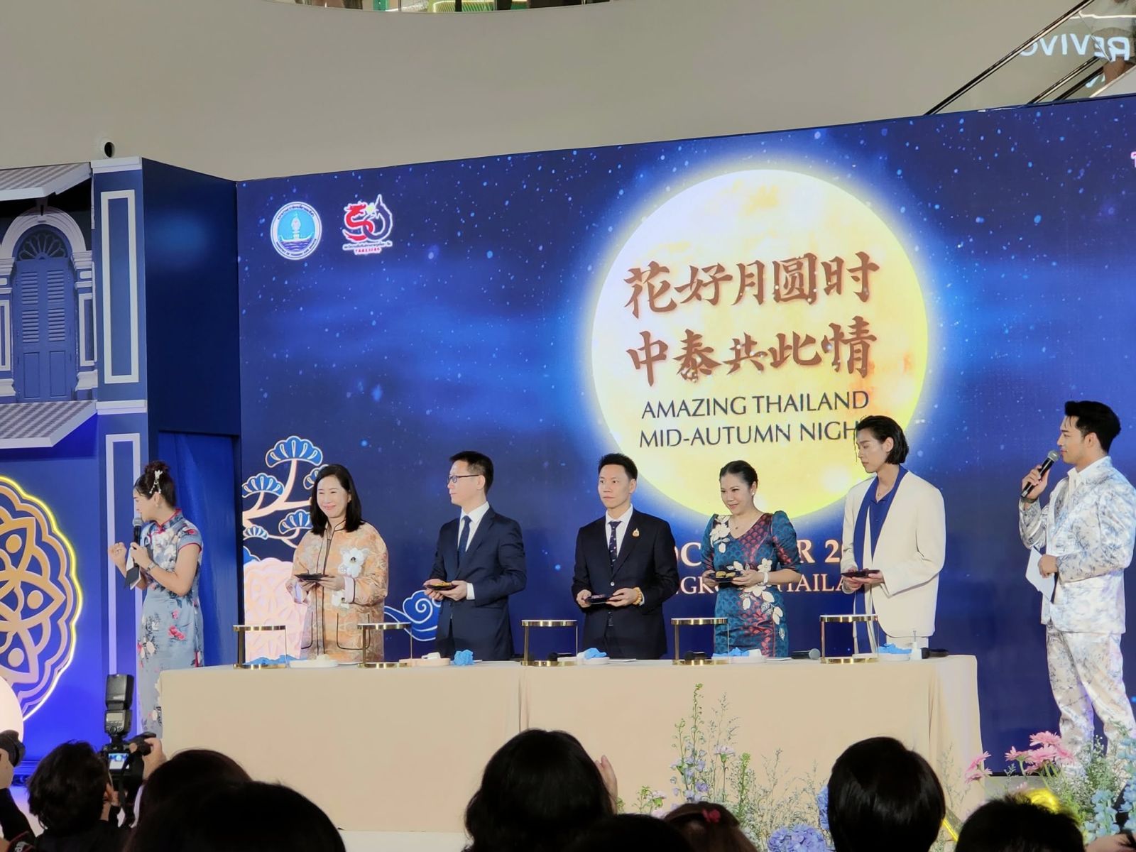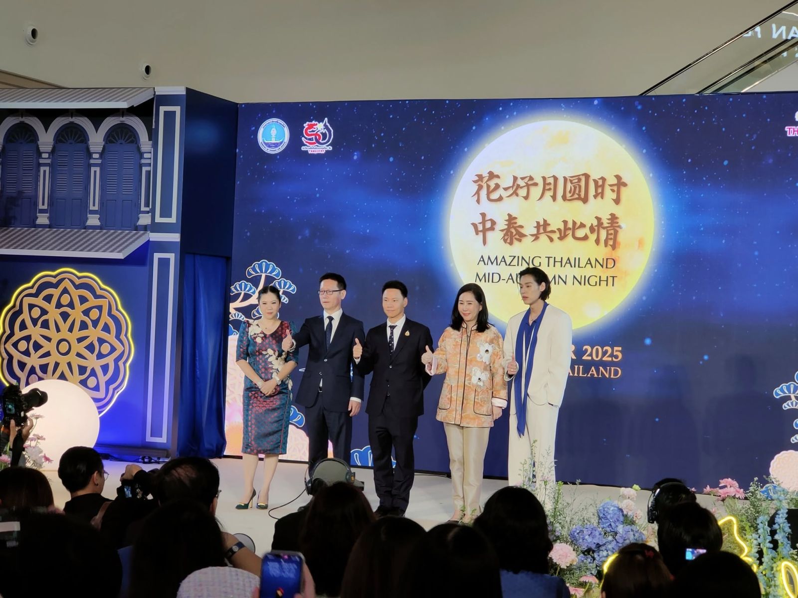 ทั้งนี้ งานเลี้ยงต้อนรับ Amazing Thailand, Mid-Autumn Night 2025 ณ Parade, One Bangkok ได้รับเกียรติจากนายหยาง เสี่ยวหลง ที่ปรึกษาด้านวัฒนธรรม สถานเอกอัครราชทูตจีนประจำประเทศไทย กล่าวต้อนรับและอวยพรเนื่องในโอกาสพิเศษ พร้อมด้วยนายอรรถกร ศิริลัทธยากร รัฐมนตรีว่าการกระทรวงการท่องเที่ยวและกีฬา กล่าวเปิดงานอย่างเป็นทางการ ภายในงาน ททท. ต้อนรับแขกผู้มีเกียรติด้วยบรรยากาศ “The Moon of Friendship in the Garden” ท่ามกลางสวนดอกไม้อันวิจิตร รายล้อมด้วยพระจันทร์ที่เปรียบเสมือนสัญลักษณ์แห่งการเชื่อมโยงหัวใจของสองวัฒนธรรมให้เคียงข้างกันอย่างกลมเกลียว ถ่ายทอดความสุข รอยยิ้ม และสายสัมพันธ์ที่จะก้าวสู่อนาคตร่วมกัน พร้อมทั้งนำเสนอ “ขนมไหว้พระจันทร์” ซึ่งหมายถึง ความสมบูรณ์ ความรื่นรมย์ และคำมั่นแห่งมิตรภาพอันยั่งยืน พร้อมกันนี้ยังได้เชิญแขกคนพิเศษ ป้อง - ณวัฒน์ กุลรัตนรักษ์ ร่วมพูดคุยประสบการณ์ด้านการท่องเที่ยวและความสัมพันธ์ไทย-จีน และบิวกิ้น - พุฒิพงศ์ อัสสรัตนกุล ร่วมพูดคุย และมอบโชว์พิเศษเพื่อเฉลิมฉลองและอวยพรผู้เข้าร่วมงาน โดยยังได้ร่วมทำขนมไหว้พระจันทร์ไส้มงคล พร้อมกับรัฐมนตรีว่าการกระทรวงการท่องเที่ยวและกีฬา ที่ปรึกษาด้านวัฒนธรรมจากสถานเอกอัครราชทูตจีน นางสาวนัทรียา ทวีวงศ์ ปลัดกระทรวงการท่องเที่ยวและกีฬา และนางสาวฐาปนีย์ เกียรติไพบูลย์ ผู้ว่าการ ททท.