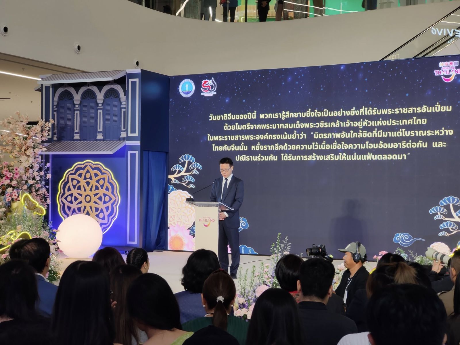 วันนีั (6 ตุลาคม 2568) นายอรรถกร ศิริลัทธยากร รัฐมนตรีว่าการกระทรวงการท่องเที่ยวและกีฬา พร้อมด้วยนายหยาง เสี่ยวหลง ที่ปรึกษาด้านวัฒนธรรม สถานเอกอัครราชทูตจีนประจำประเทศไทย ร่วมเป็นประธานในงาน Amazing Thailand, Mid-Autumn Night 2025 ณ Parade Square วันแบงค็อก กรุงเทพมหานคร พร้อมให้การต้อนรับคณะ Content Creators และ KOLs จากสาธารณรัฐประชาชนจีน รวม 100 ราย ภายใต้โครงการ “Nihao Month” ซึ่งเดินทางมาสัมผัสประสบการณ์สินค้าและบริการด้านการท่องเที่ยวไทย เพื่อนำไปสร้างสรรค์คอนเทนต์ประชาสัมพันธ์ กระตุ้นแรงบันดาลใจและแรงจูงใจในการเดินทาง พร้อมใช้โอกาสเดียวกันนี้ร่วมเฉลิมฉลองมิตรภาพ 50 ปี ความสัมพันธ์ไทย-จีน ในช่วงเทศกาลไหว้พระจันทร์และวันชาติของสาธารณรัฐประชาชนจีน ทั้งยังสื่อสารโครงการ “Trusted Thailand” เพื่อสร้างความเชื่อมั่นในคุณภาพการท่องเที่ยวไทย ต่อยอดสู่การเดินทางแบบ Two-Way Tourism ที่สะท้อนการแลกเปลี่ยนวัฒนธรรมและความร่วมมือด้านการท่องเที่ยวอย่างยั่งยืนในอนาคต