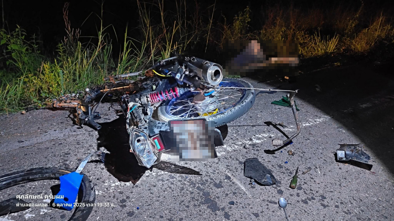 รถจักรยานยนต์ชนกันเสียหายพังยับ กลางถนนเส้นทางดอนทอง - เขาฟ้า มีผู้เสียชีวิต 2 ราย จ.พิษณุโลก